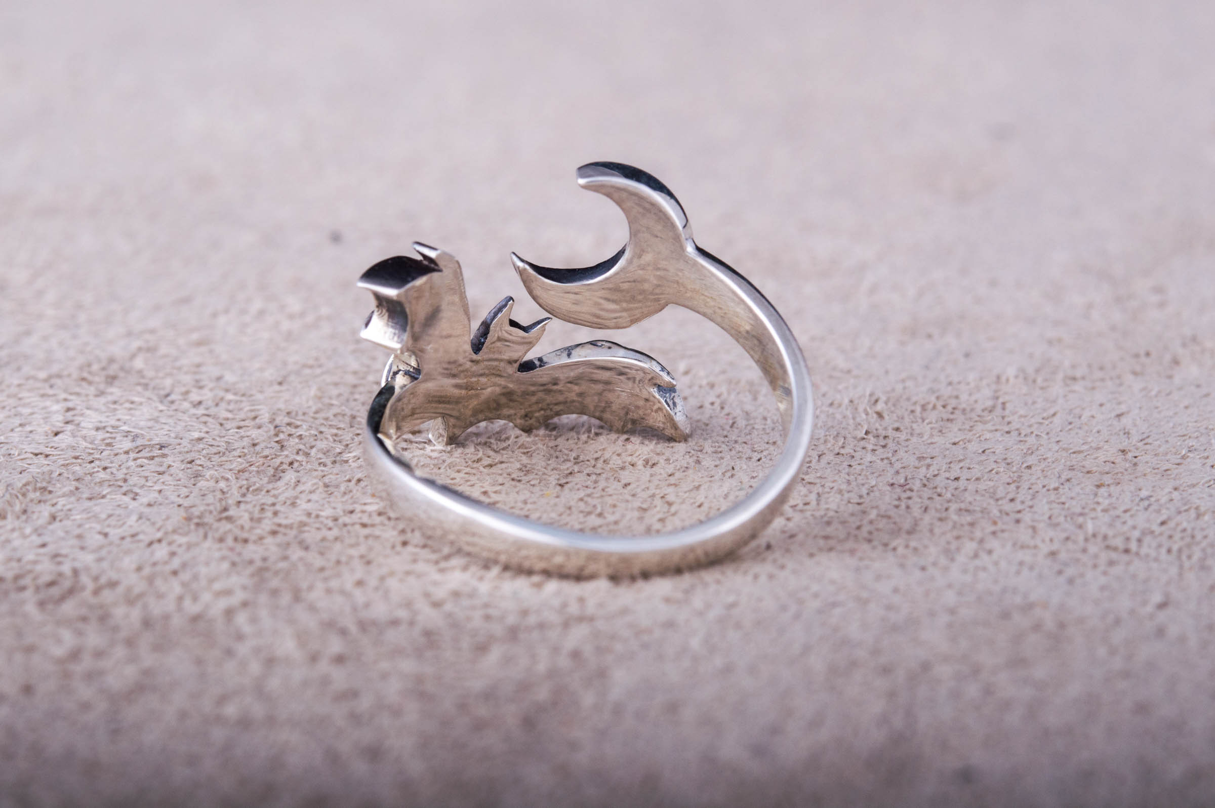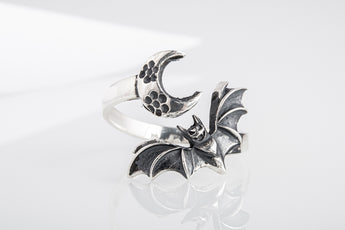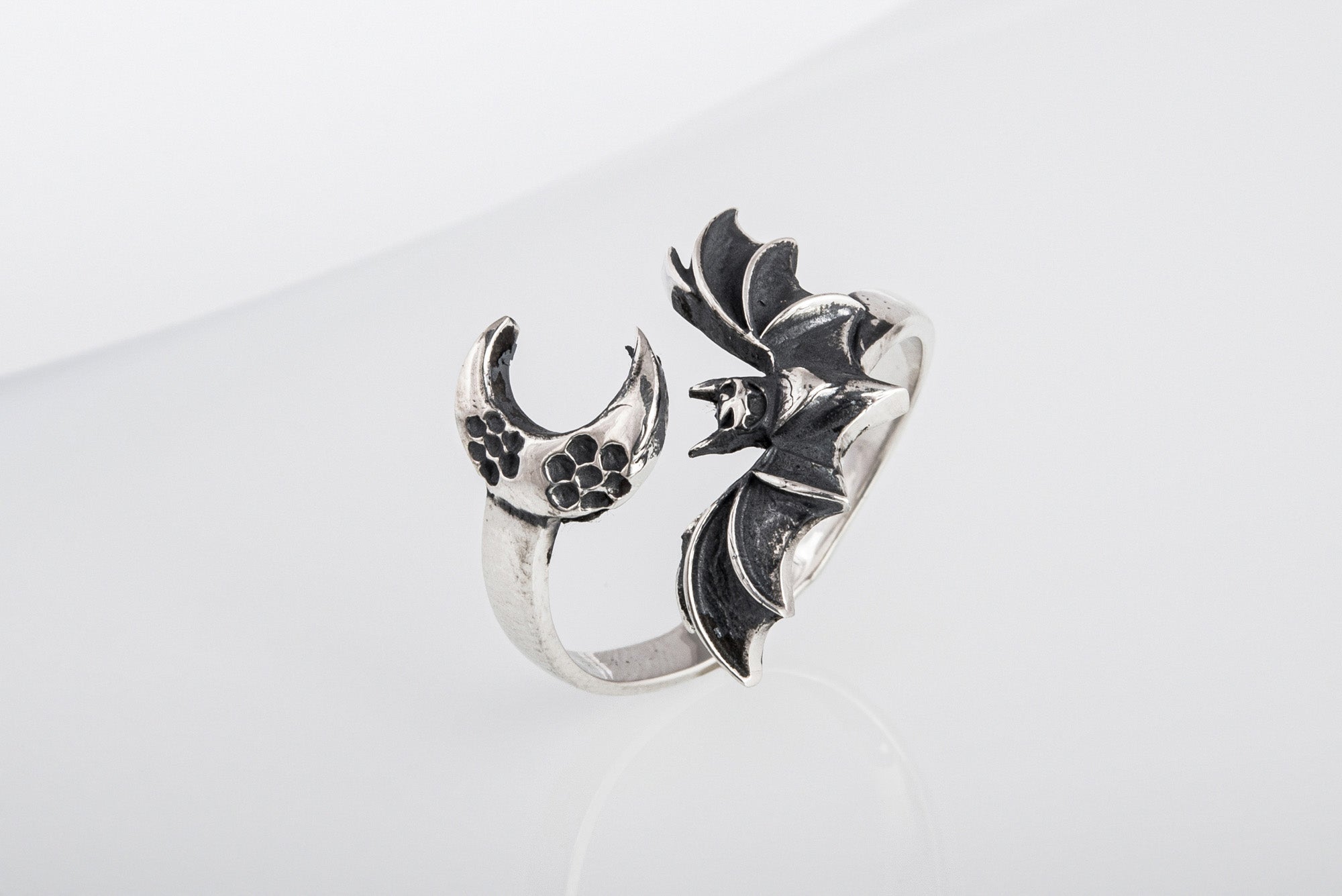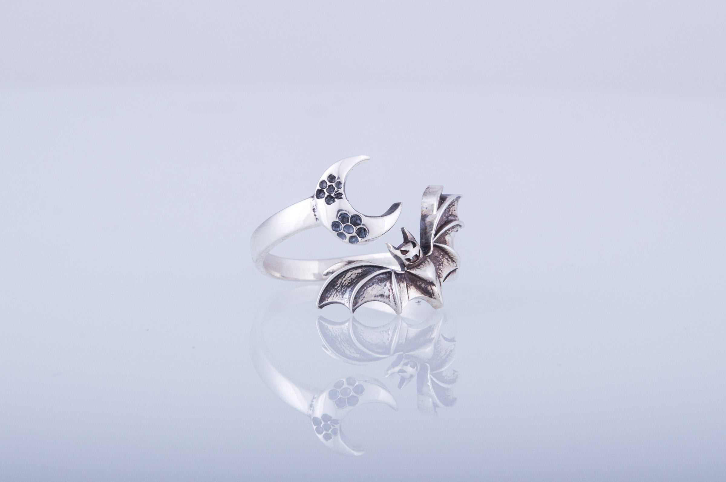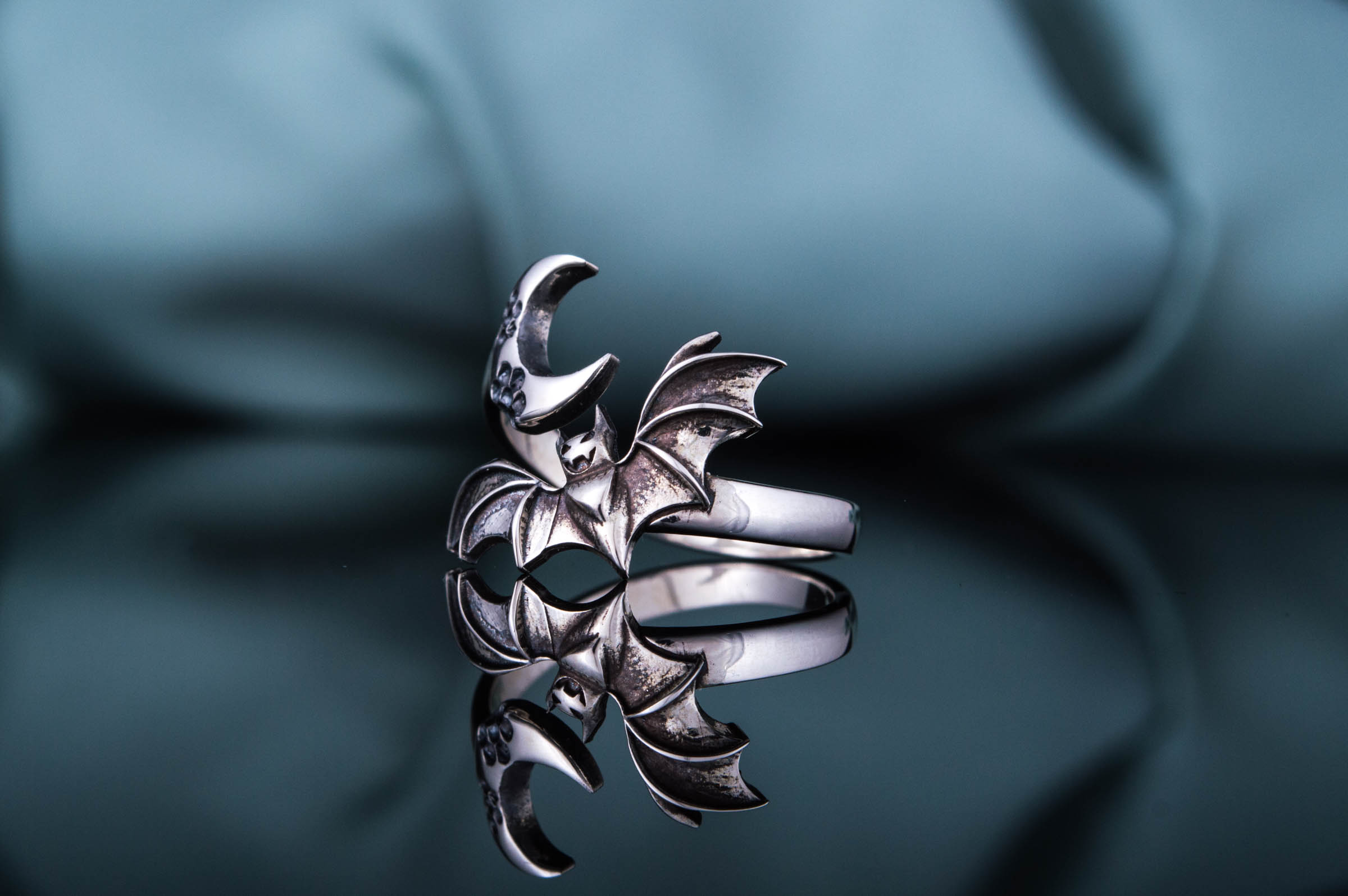 Halloween Ring with Bat and Moon Sterling Silver Jewelry
