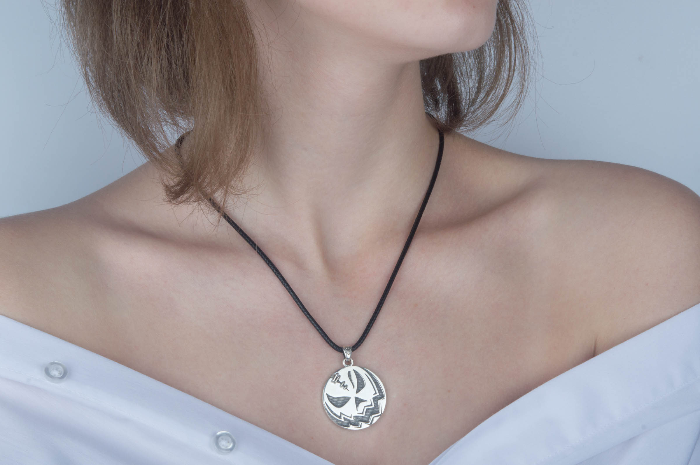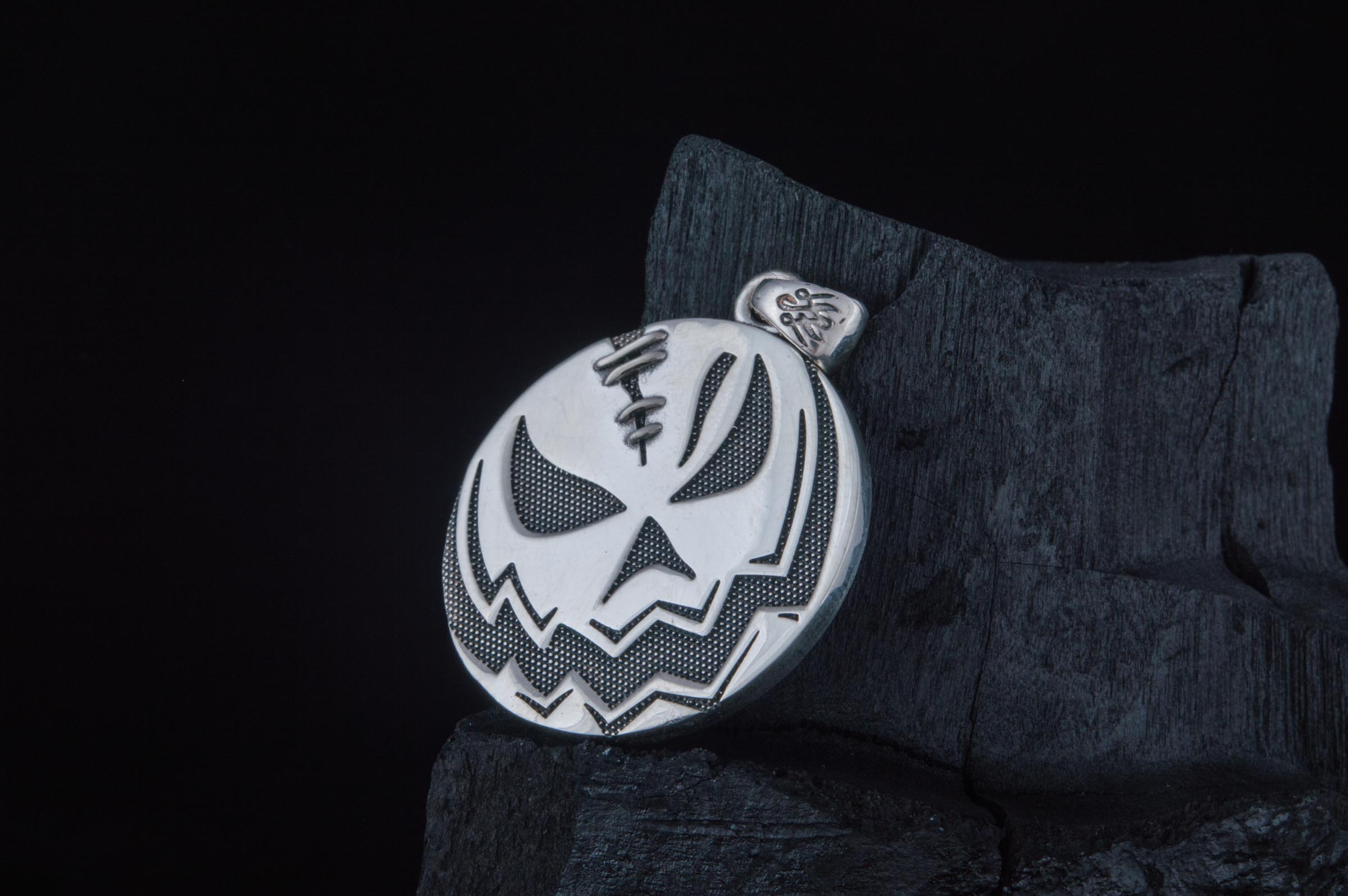 Halloween Pumpkin Pendant Sterling Silver Jewelry V02