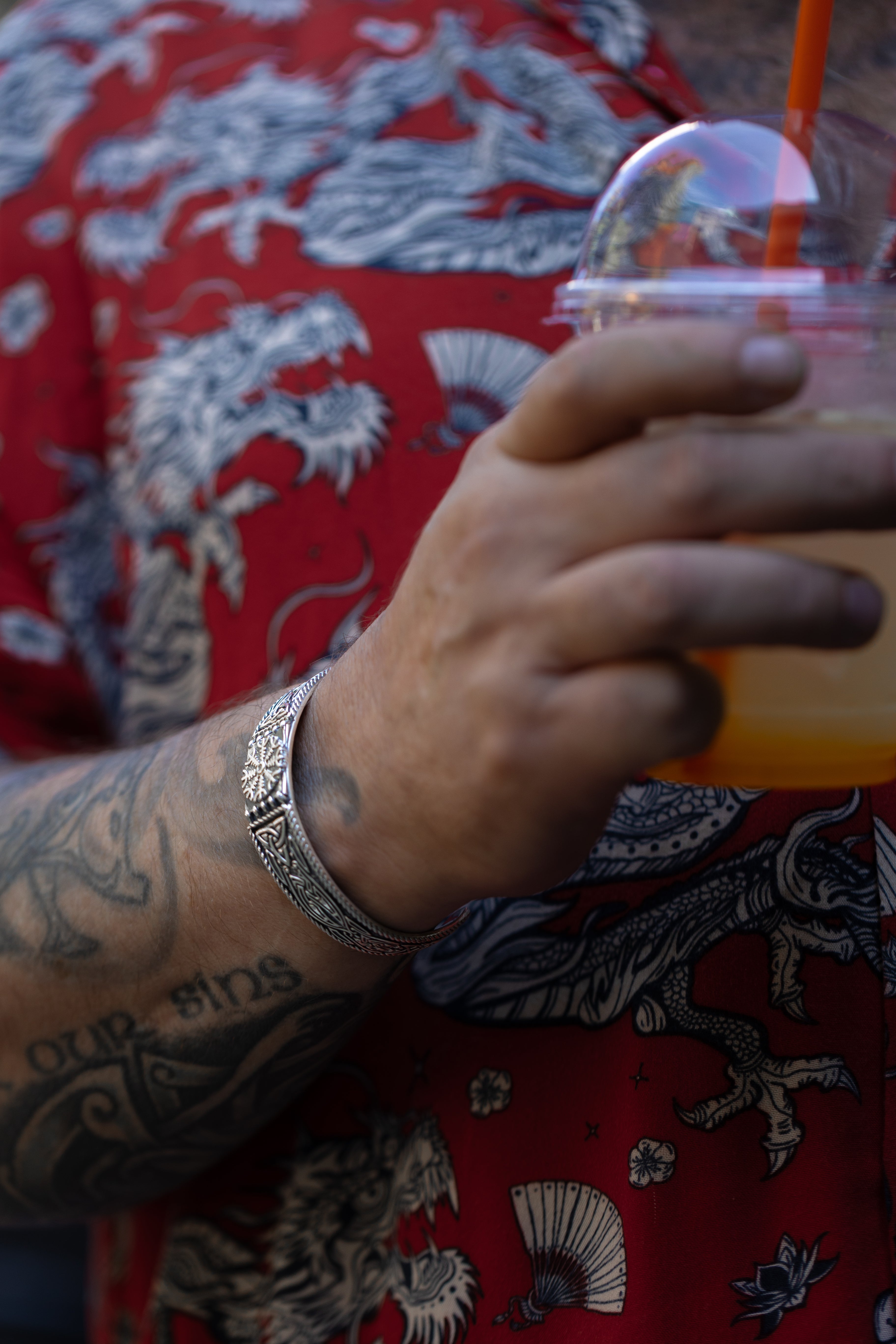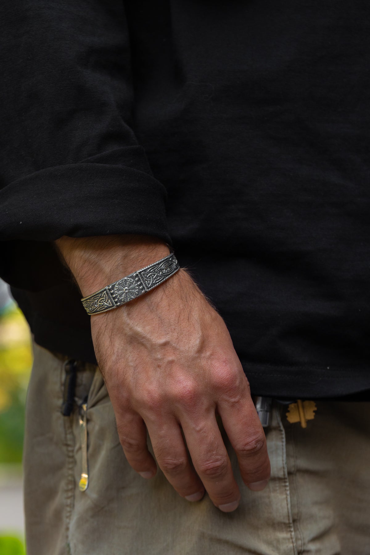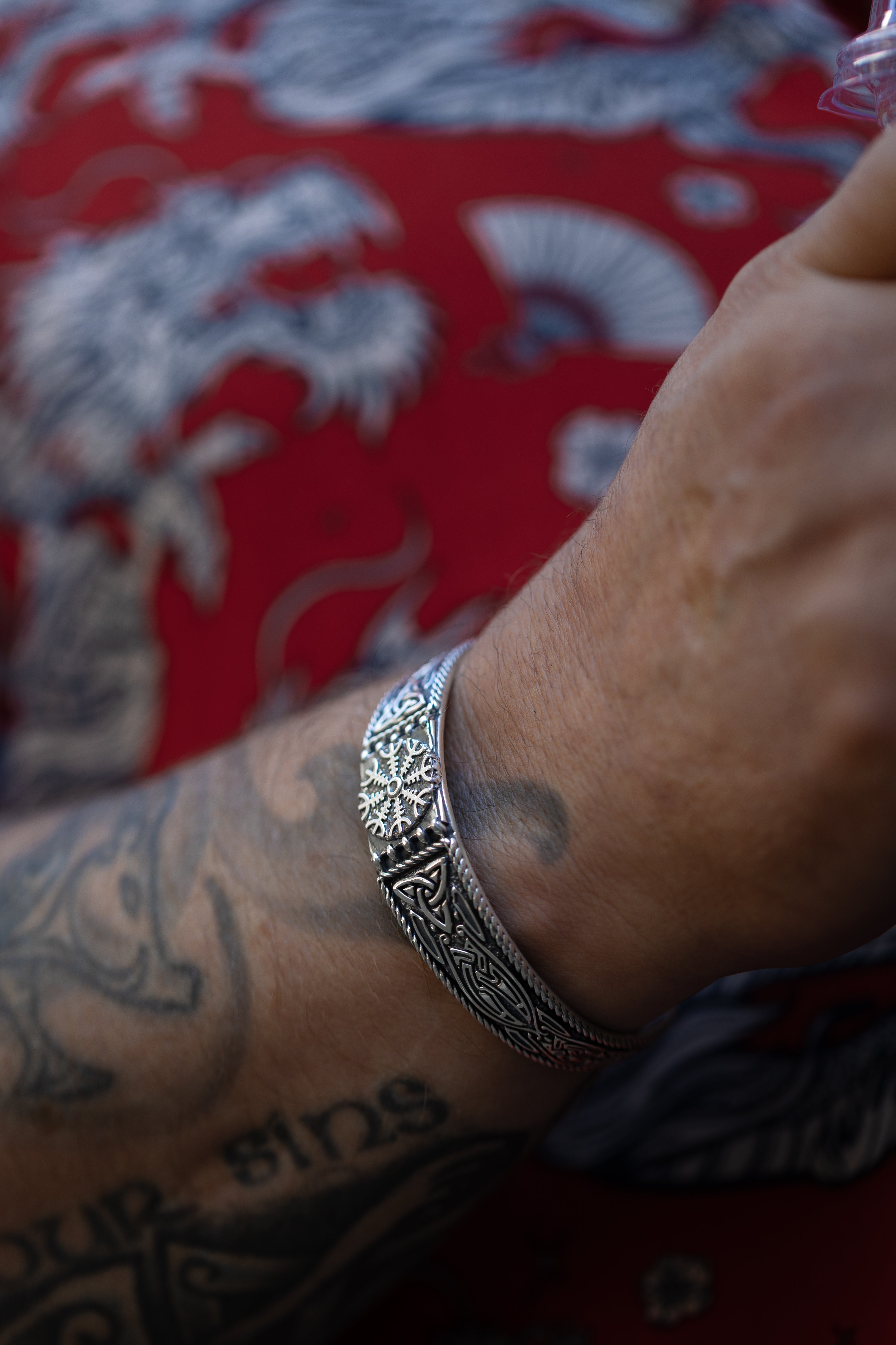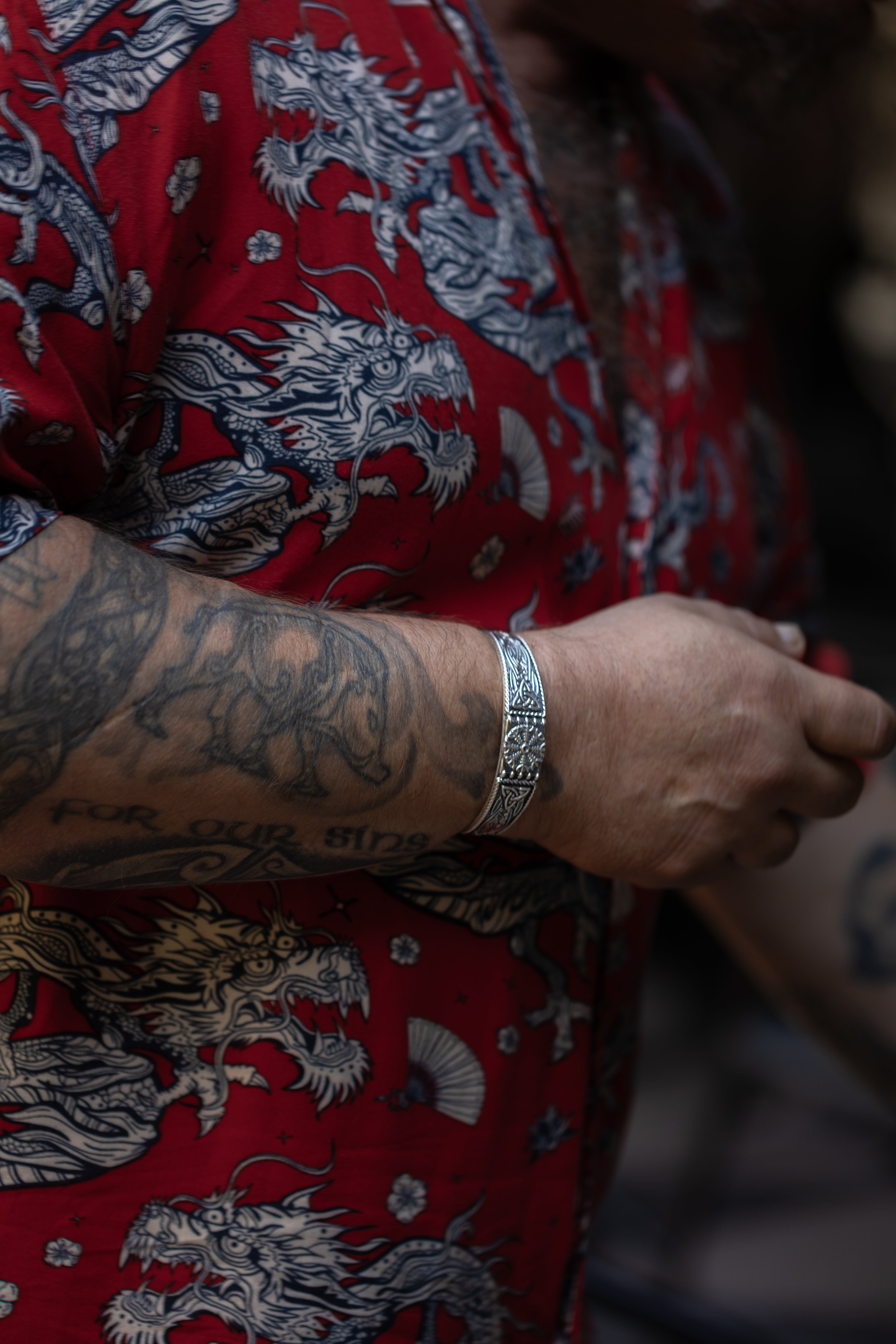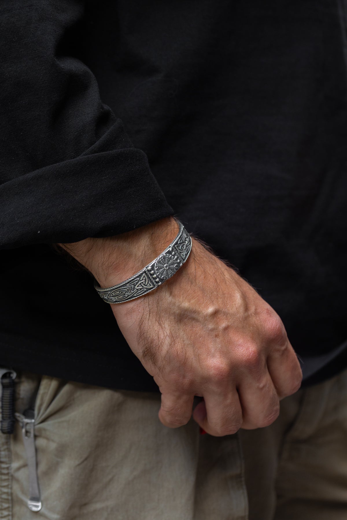 A wide silver bracelet, forged for those who do not seek fear — but do not shy away from facing it.