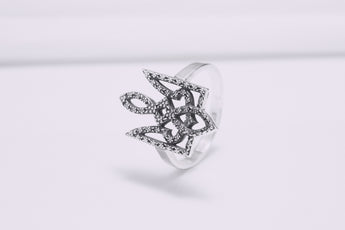 Sterling Silver Ukrainian Trident Ring with Flowers, Made in Ukraine Jewelry