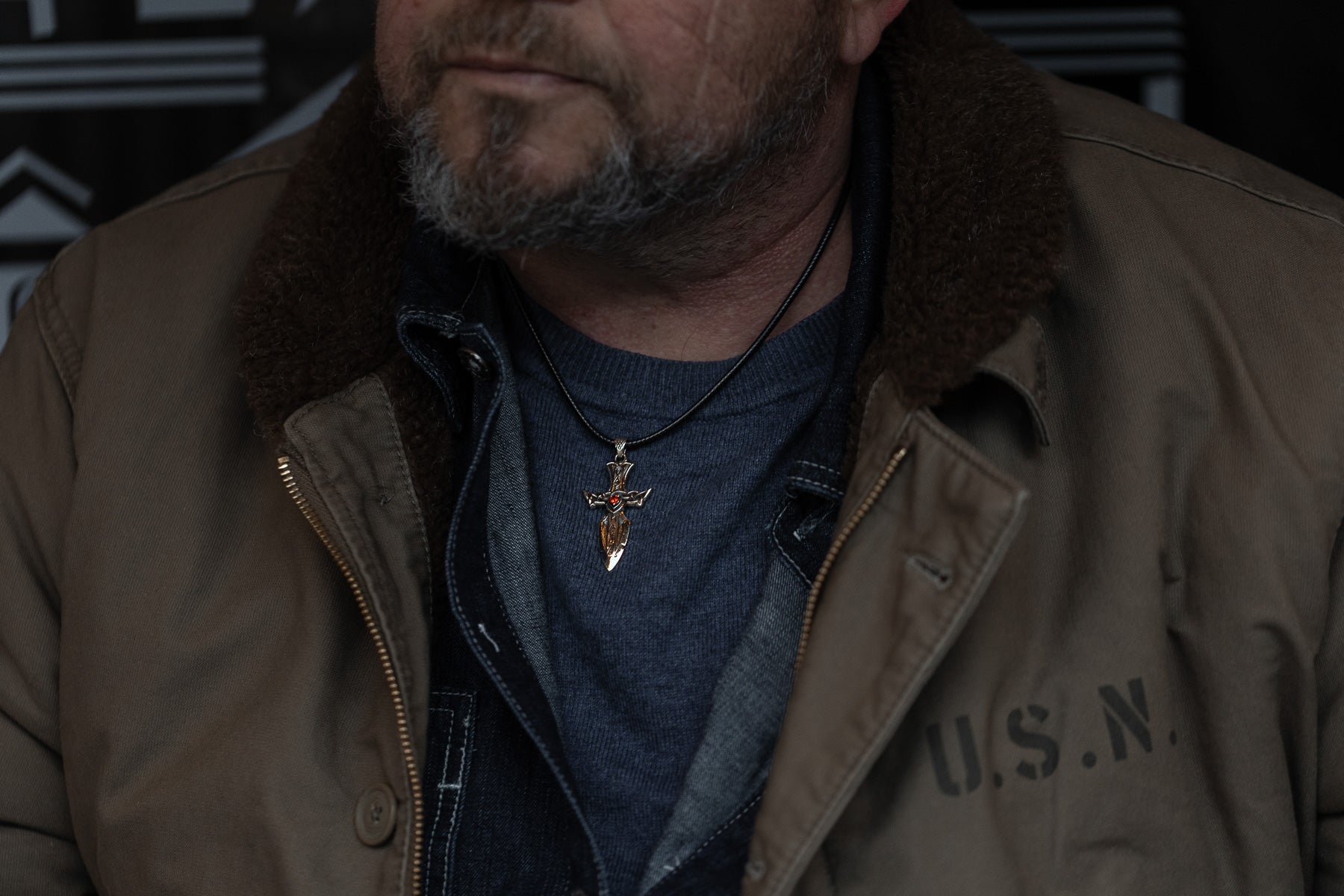 A brass sword pendant etched with “Valhalla” — a symbol of honor and fearless living. The deep red stone glows like a warrior’s heart, while textured marks on the blade tell of battles endured. Not an ending, but a testament to strength that never falters.