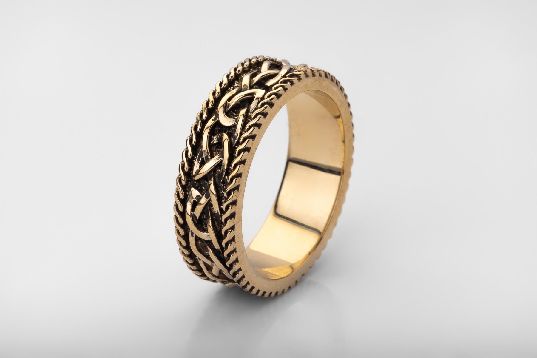 A bold brass Viking ring, intricately engraved with traditional Norse ornaments that celebrate the artistry and heritage of the North. Each curve and detail is handcrafted to honor Viking symbolism, representing strength, courage, and connection to the ancestors. This ring is more than jewelry — it is a statement of identity and respect for Norse culture. Perfect for those who seek a meaningful piece that combines history, craftsmanship, and personal style. Wear it as a talisman of resilience, honor, and the enduring spirit of the Vikings.