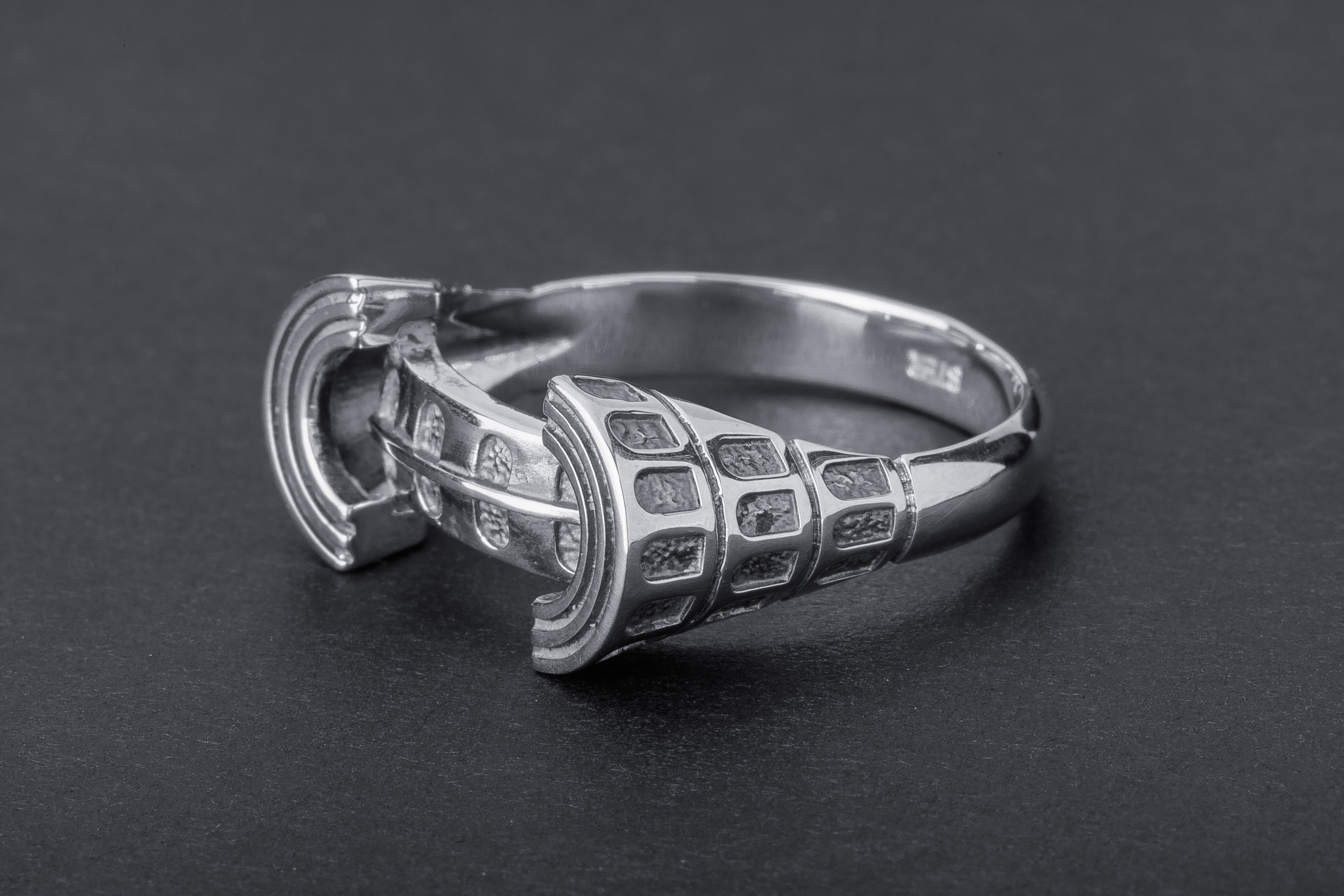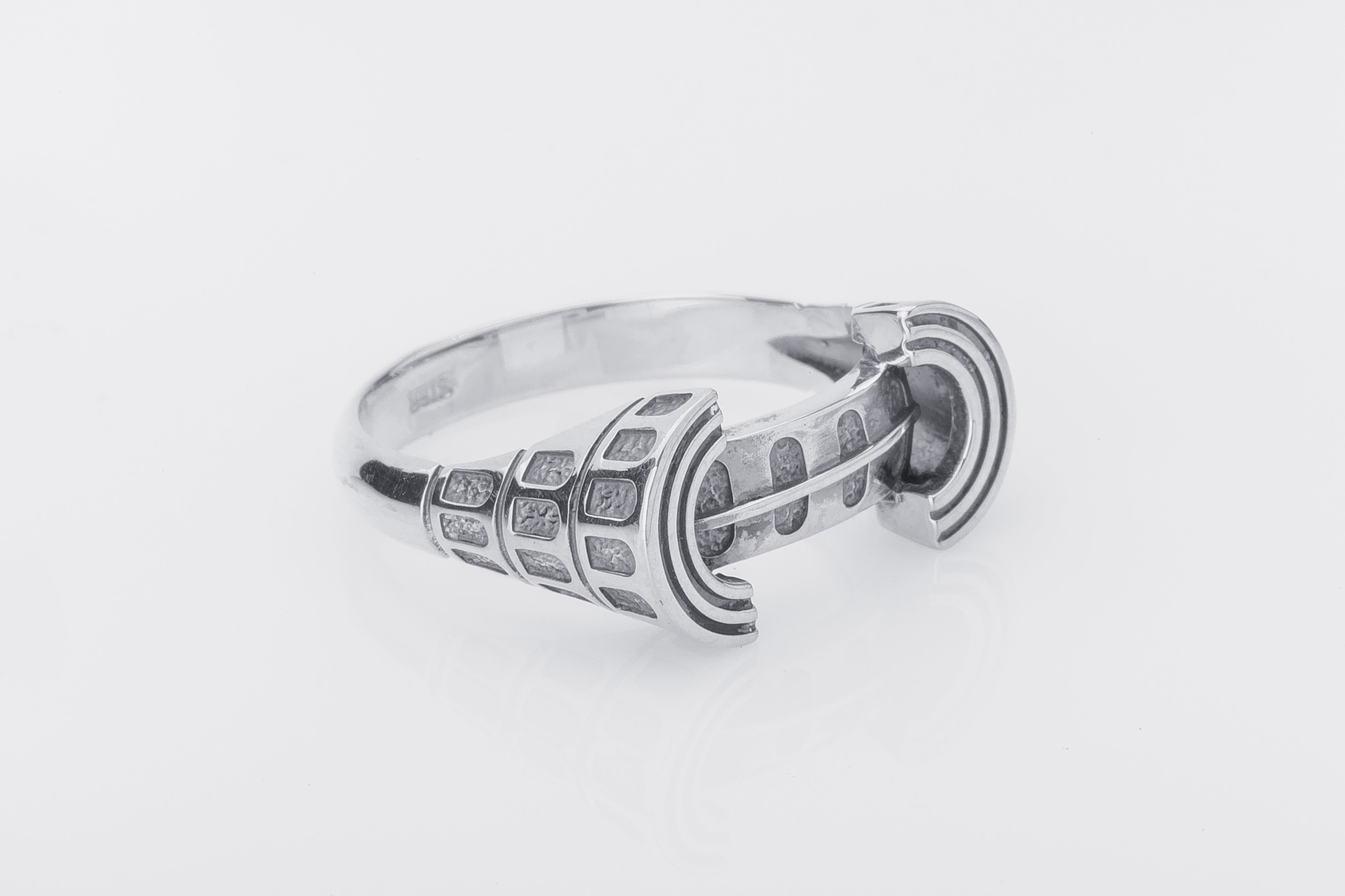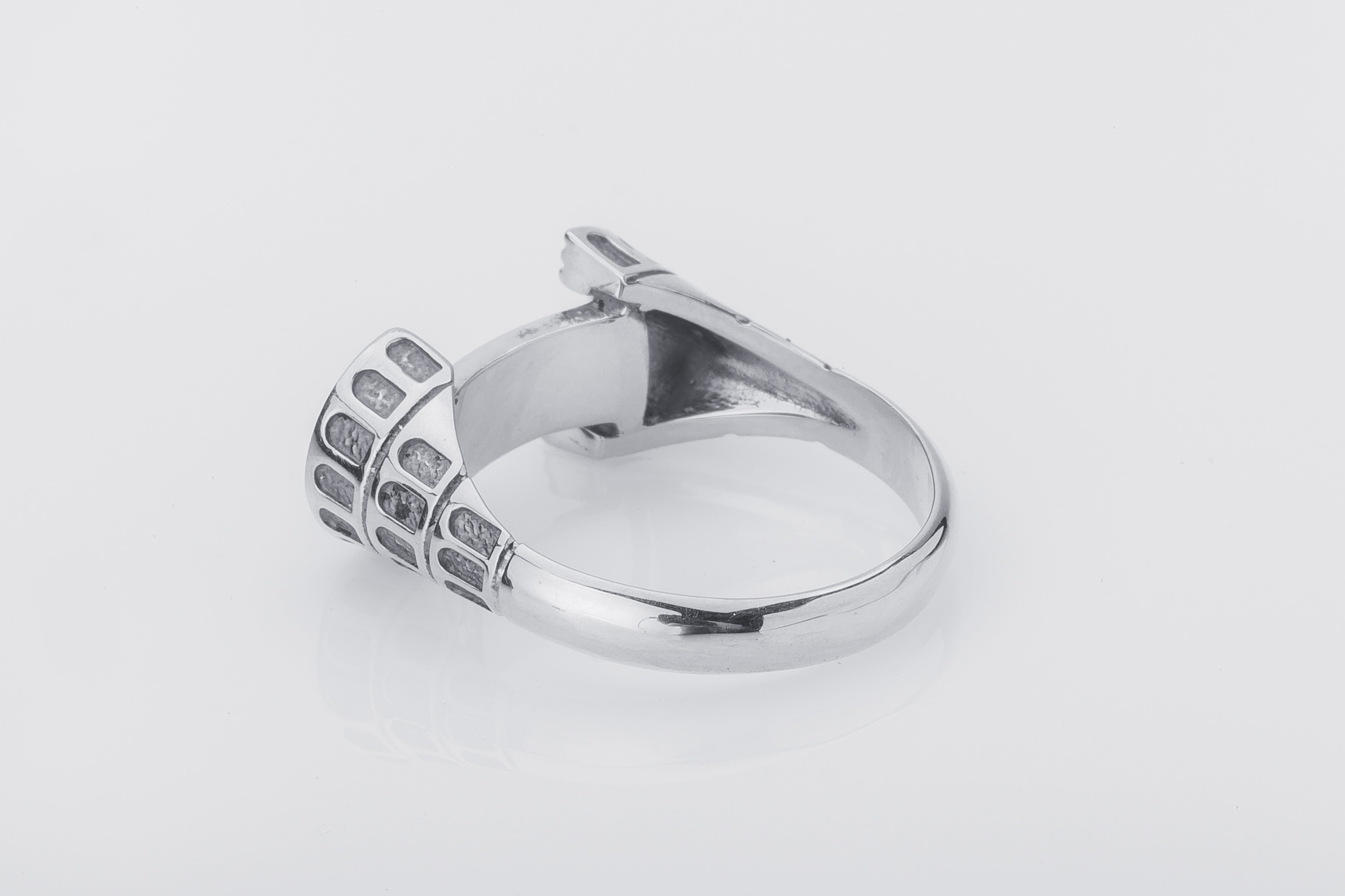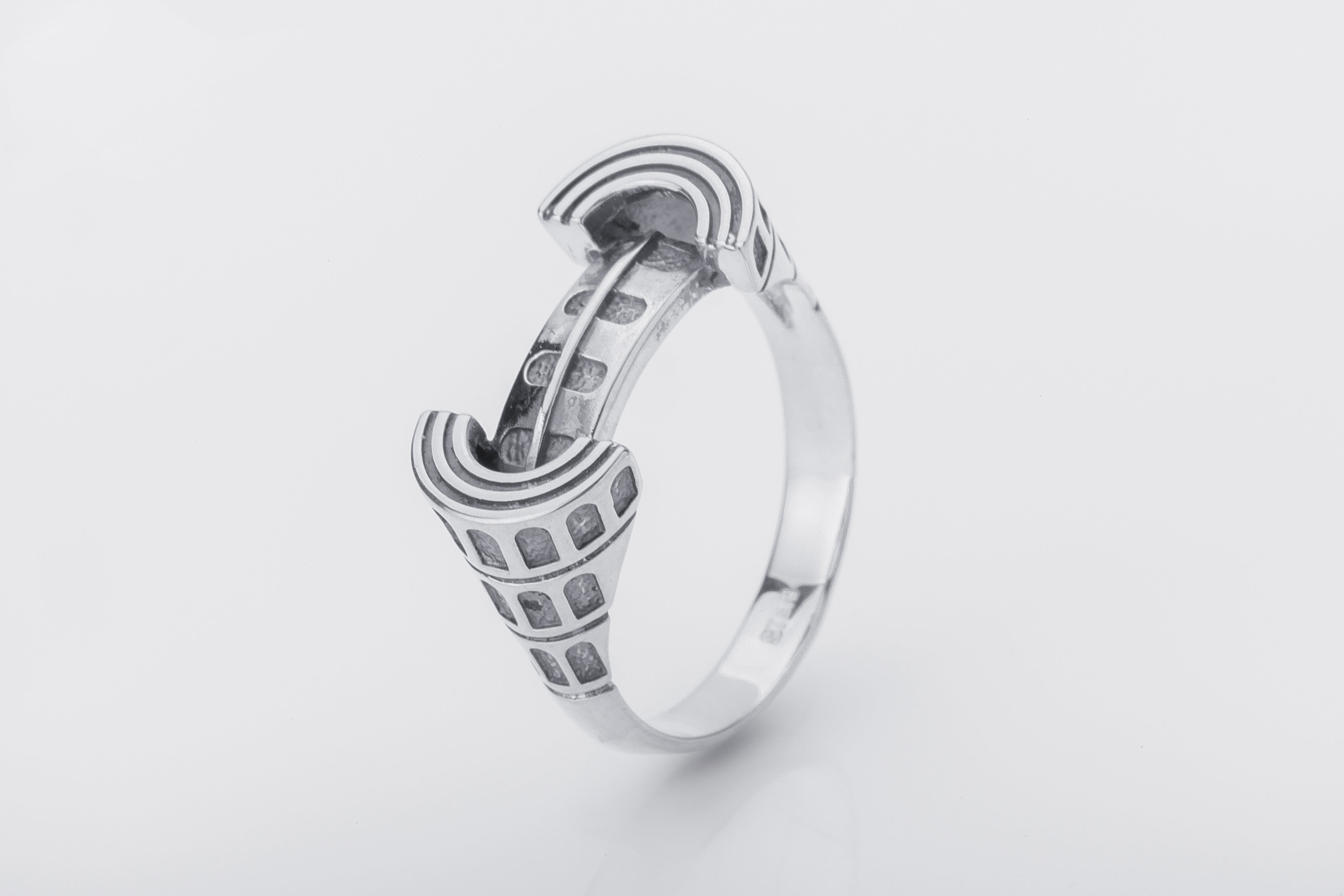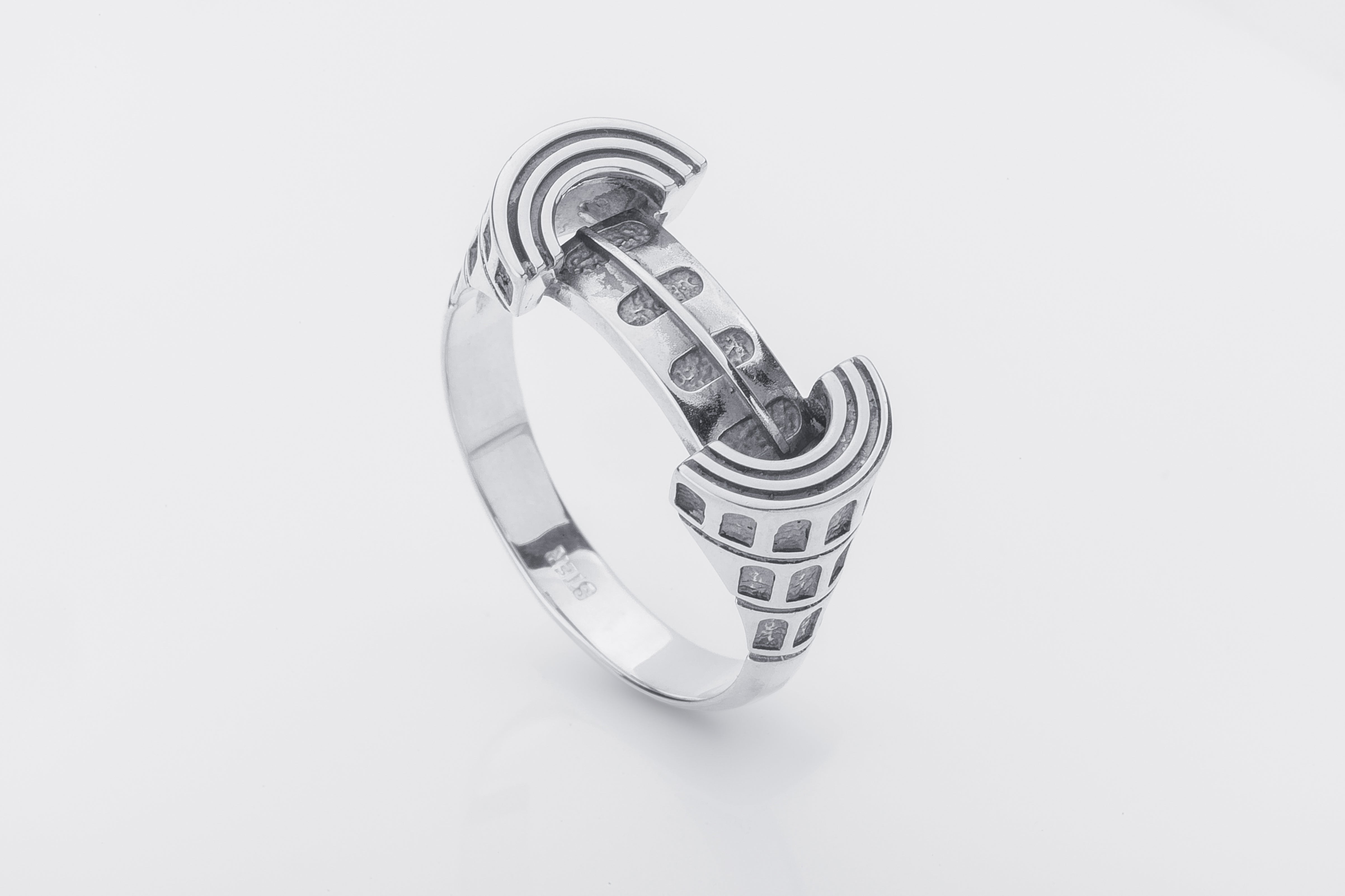 925 Silver Colosseum Road Ring with Ornament, Handcrafted Greek Jewelry
