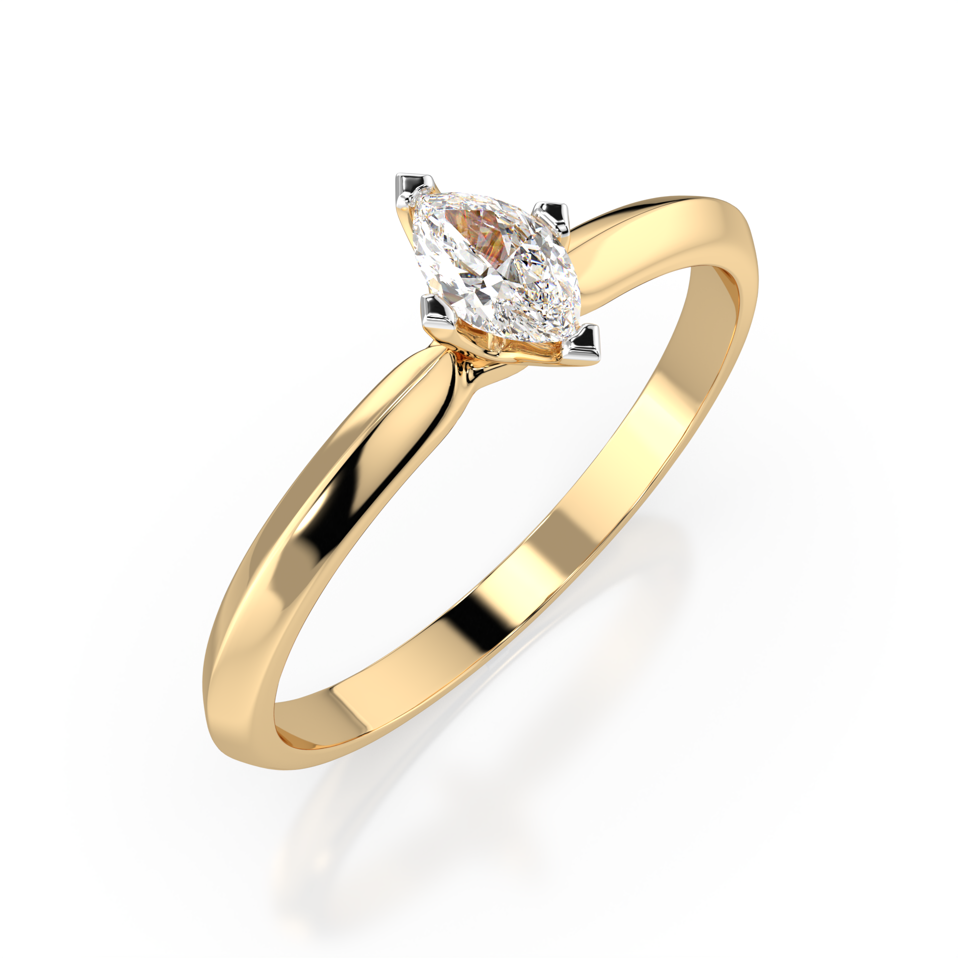 Gold engagement ring with 0.15 ct marquise diamond
