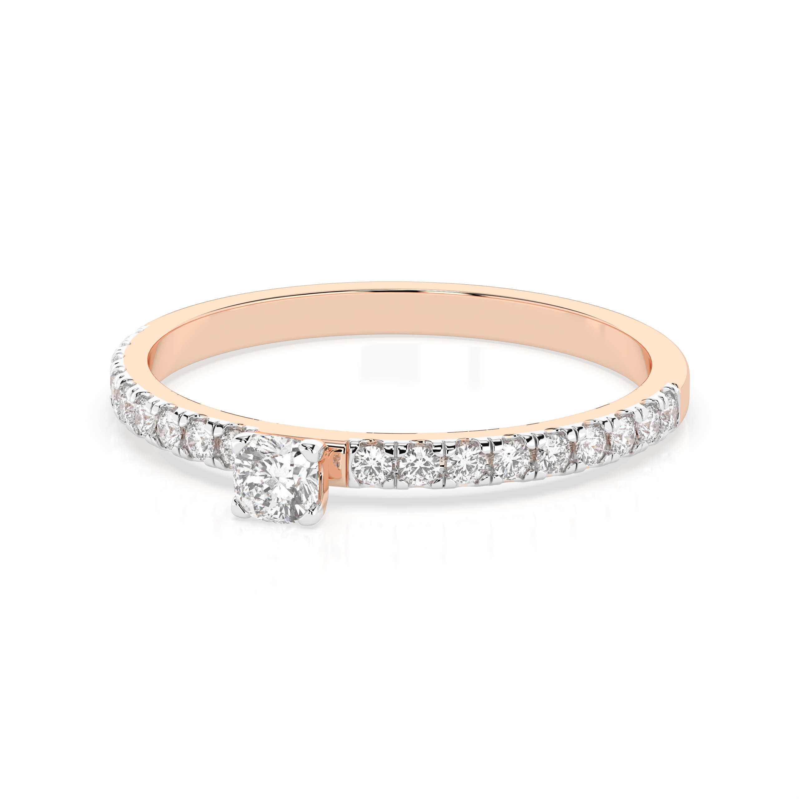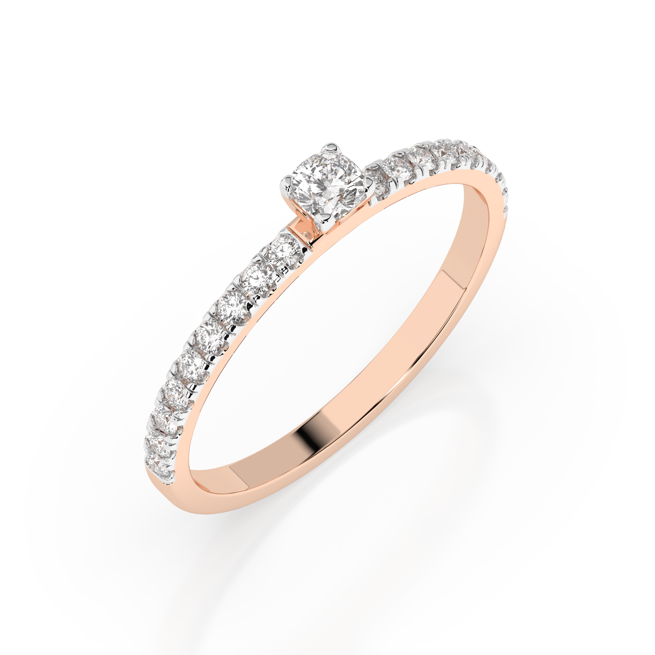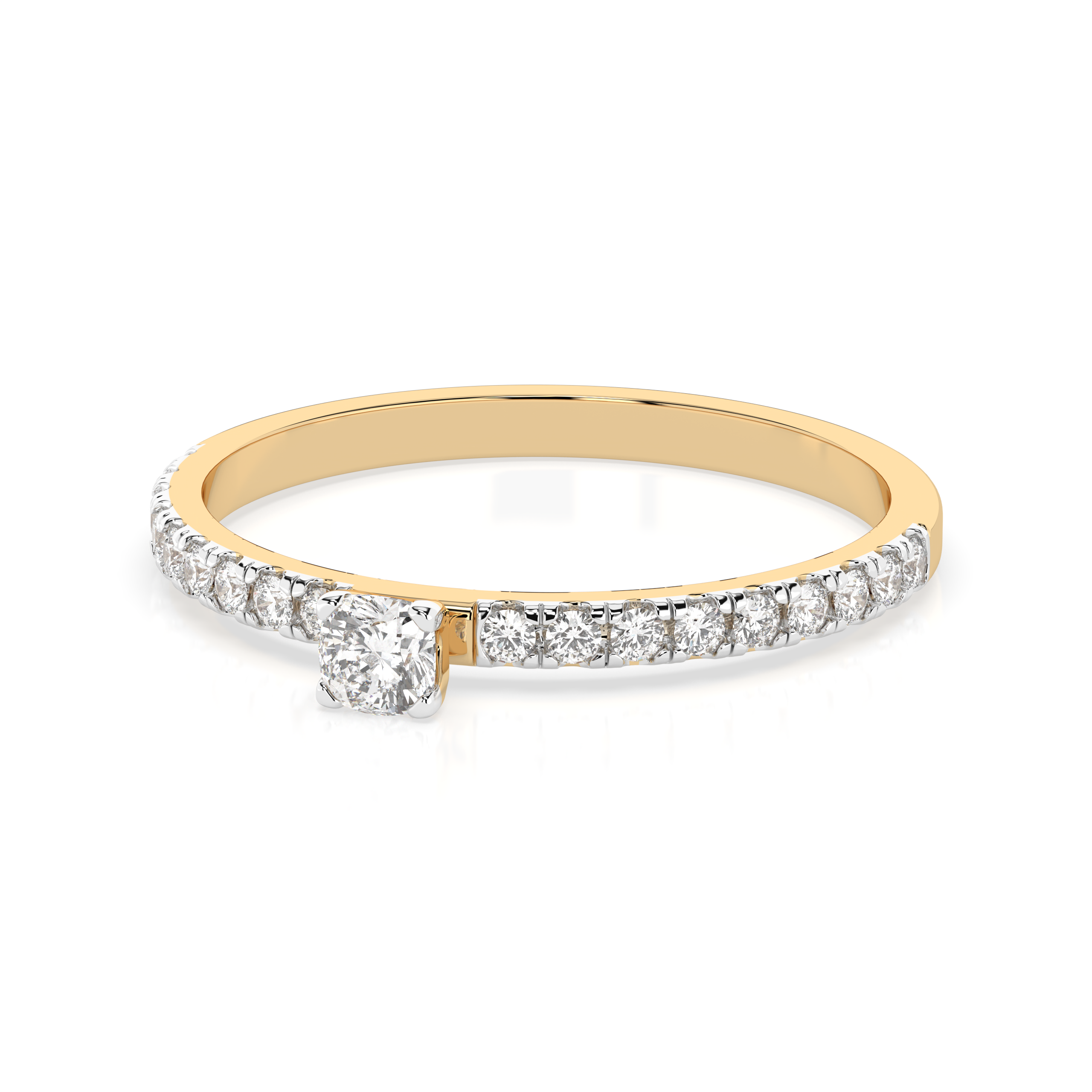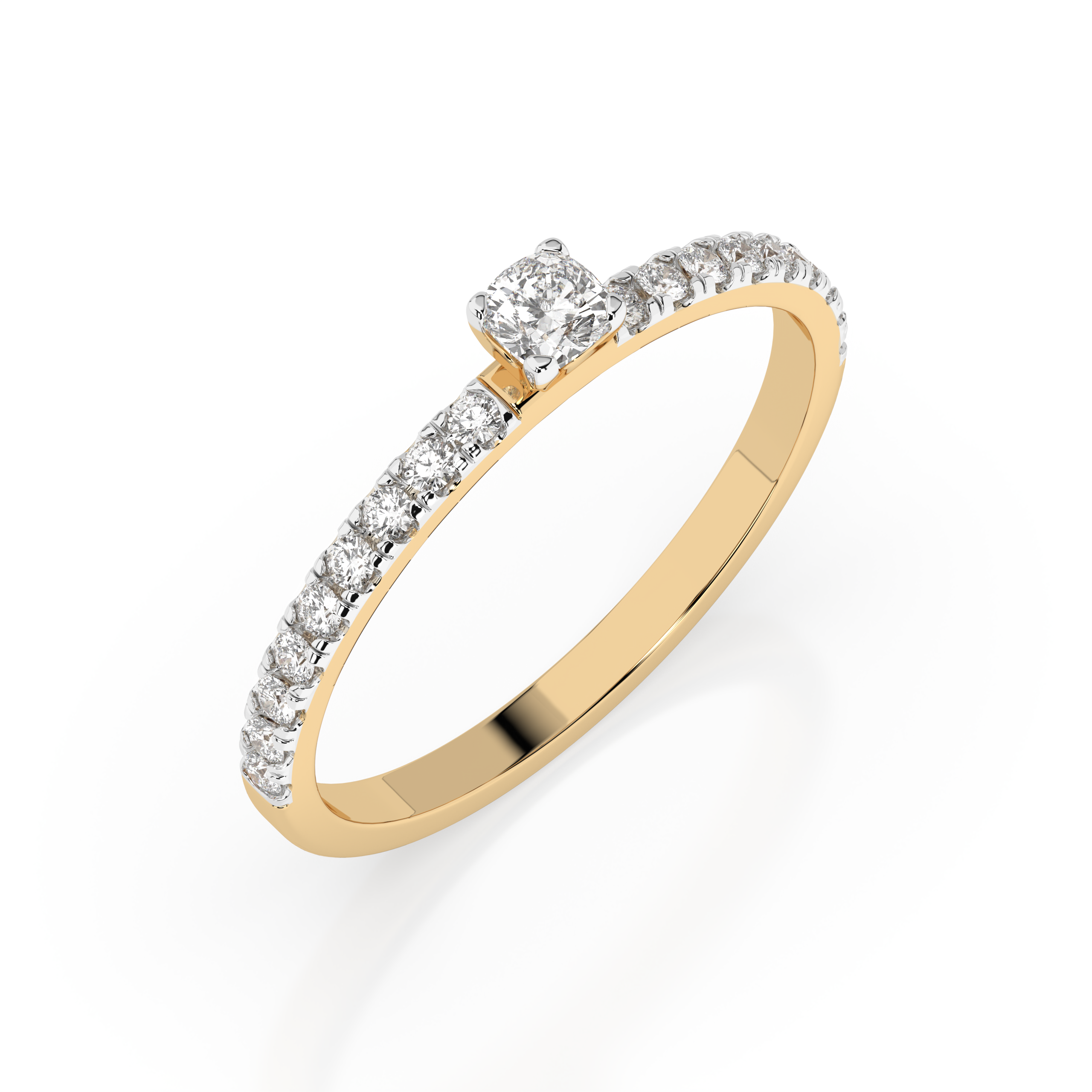 Gold engagement ring with 0.1 ct cushion diamond