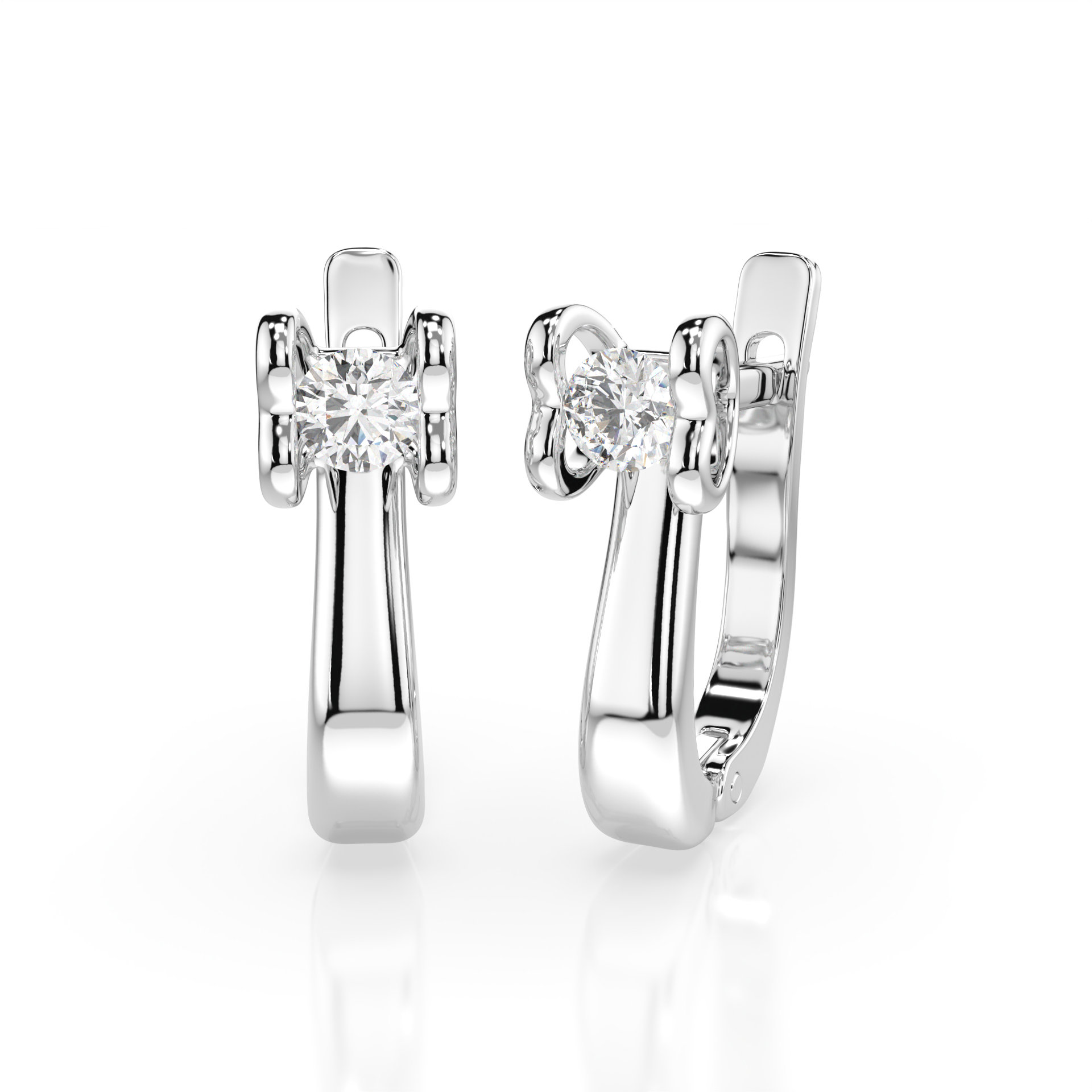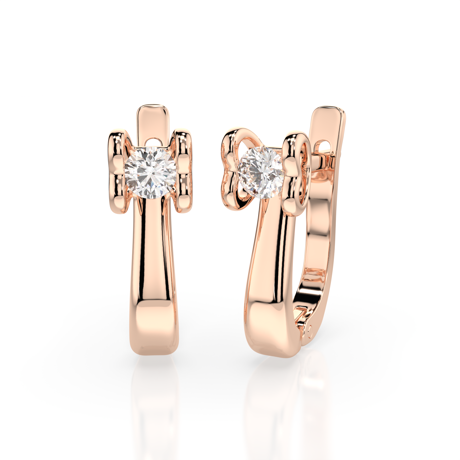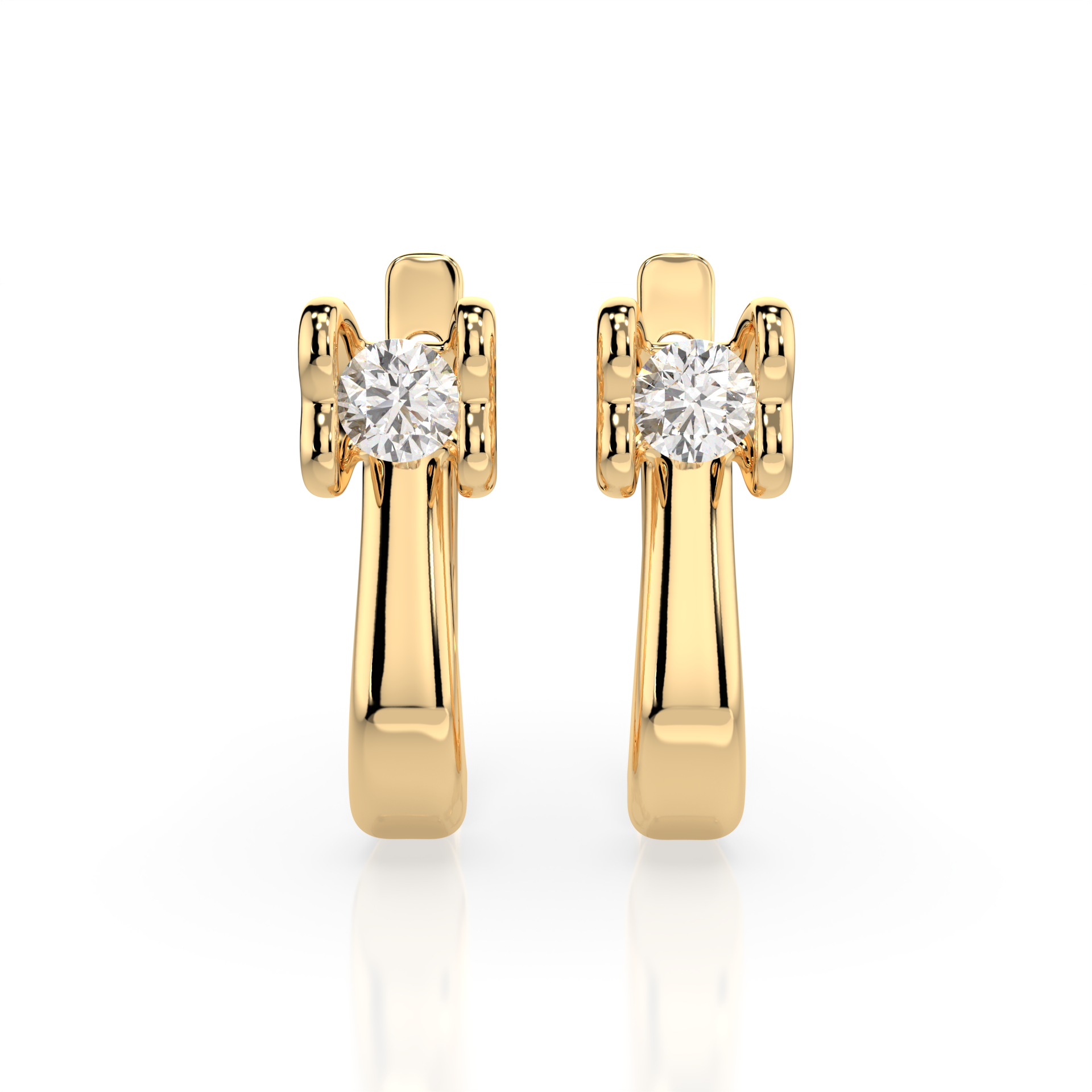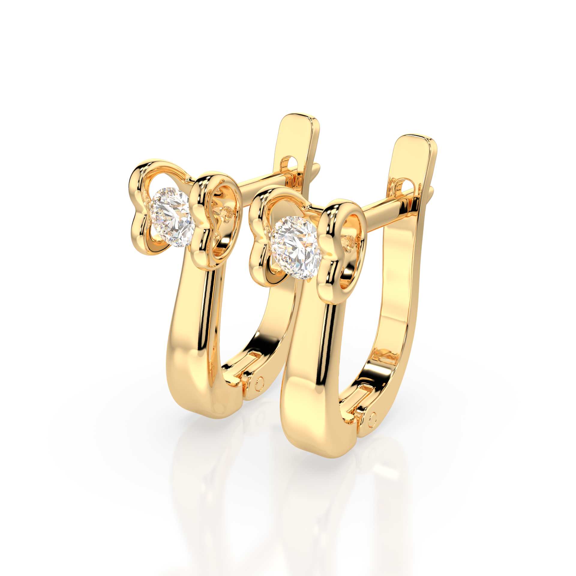 Gold Solitaire English Lock Ear Ring with 0.2 ct round diamond