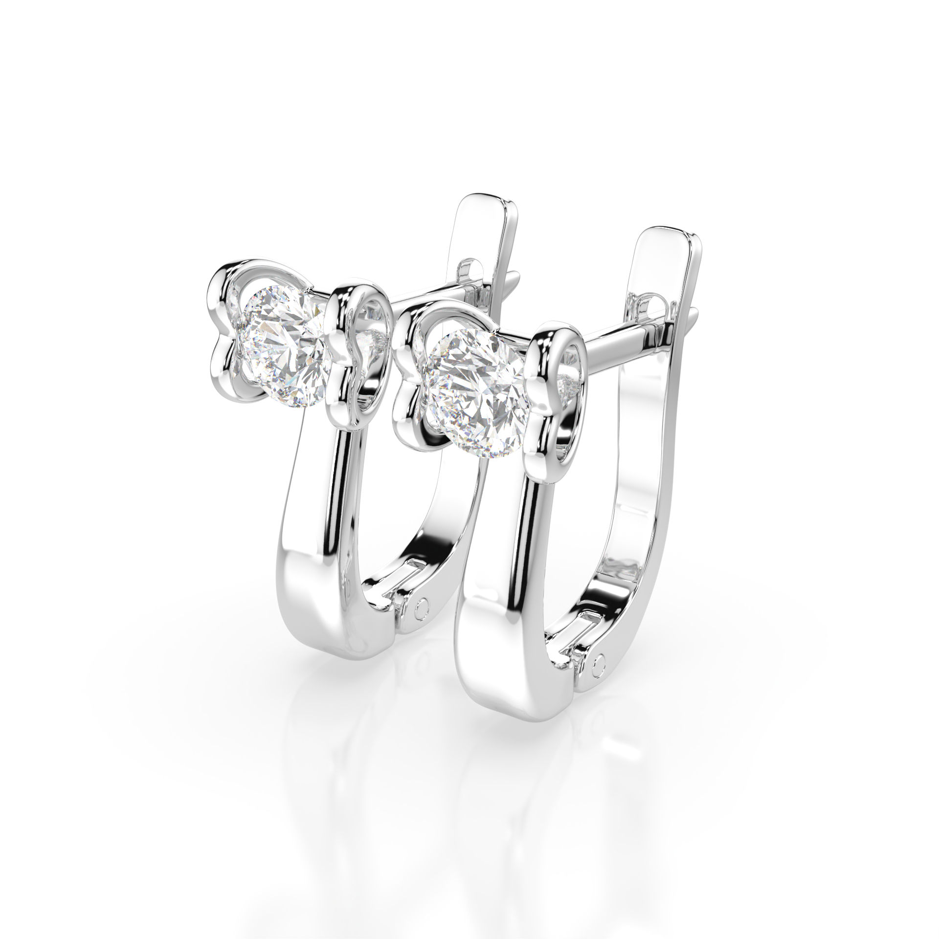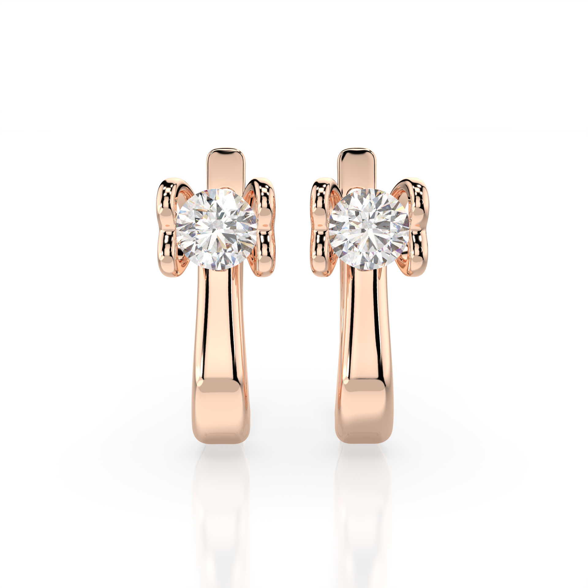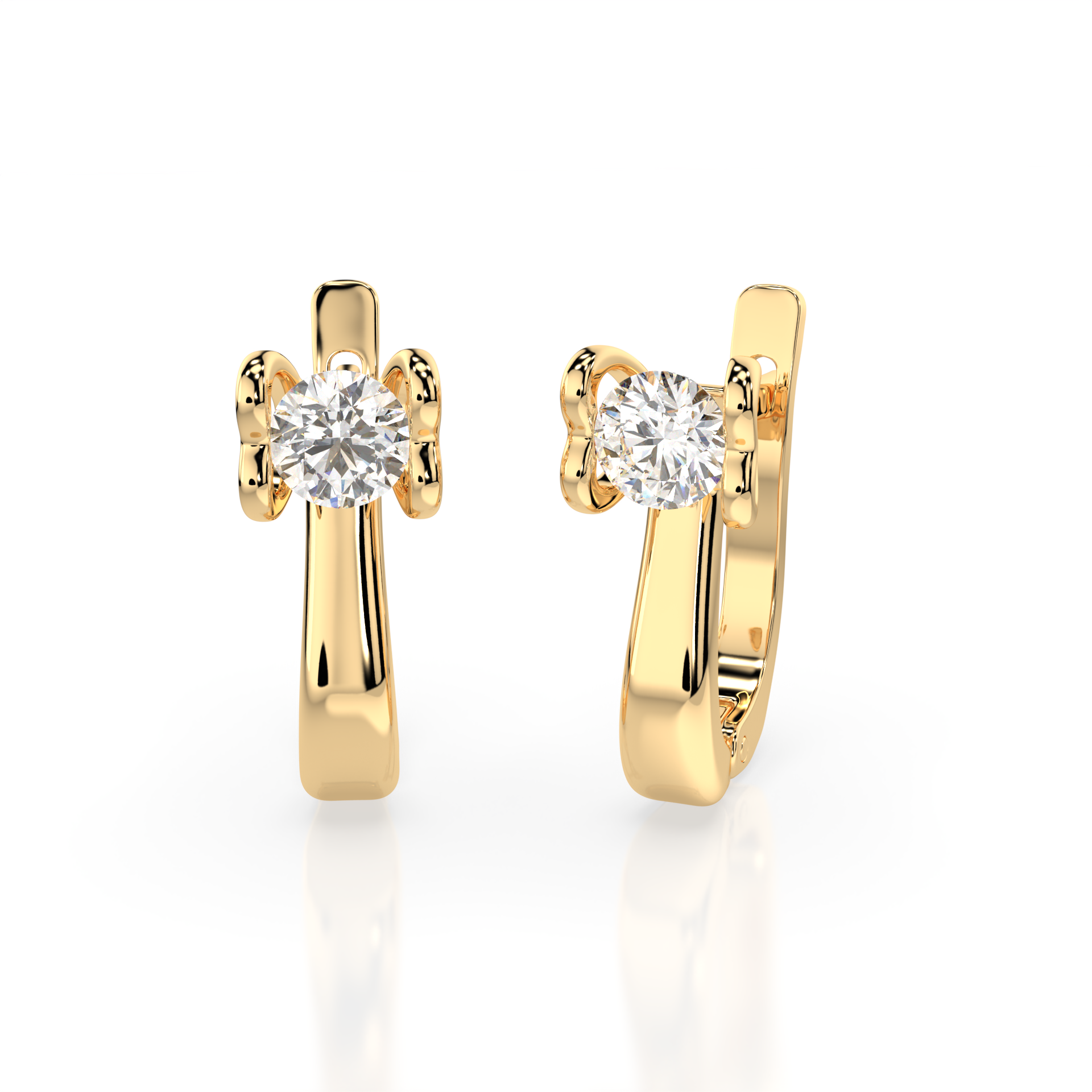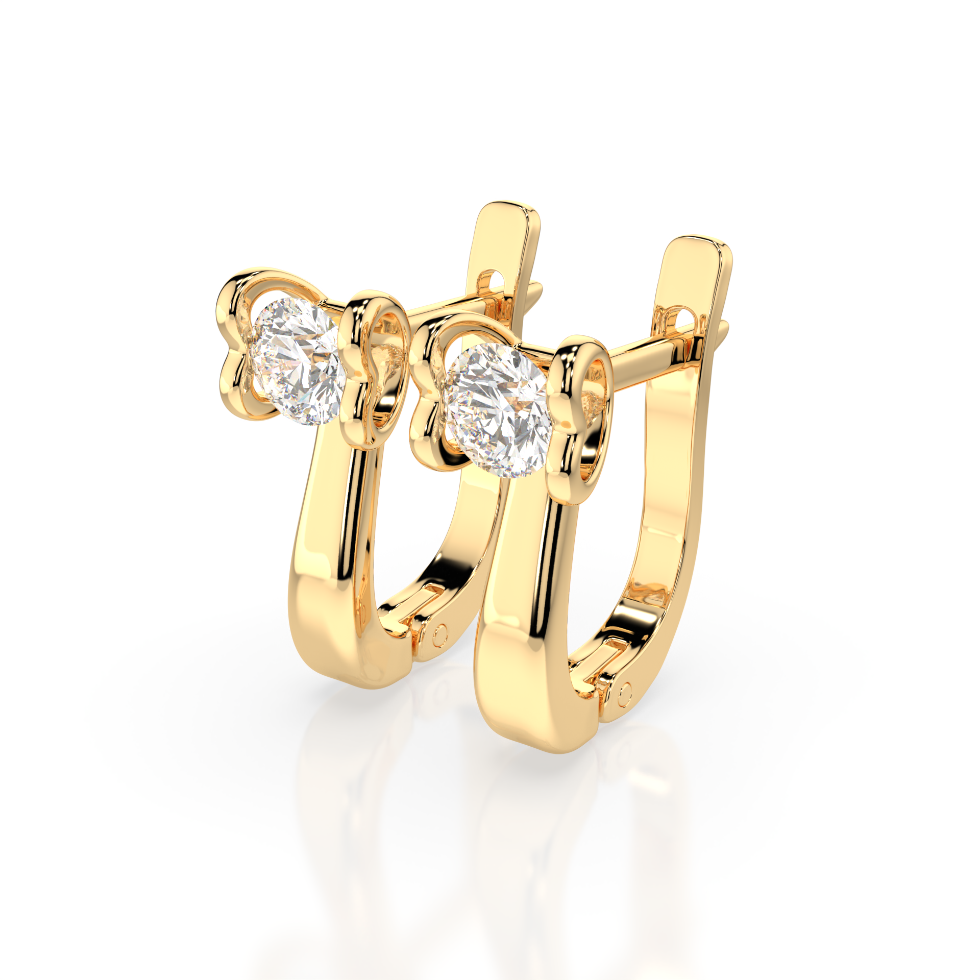 Gold Solitaire English Lock Ear Ring with 0.5 ct round diamond