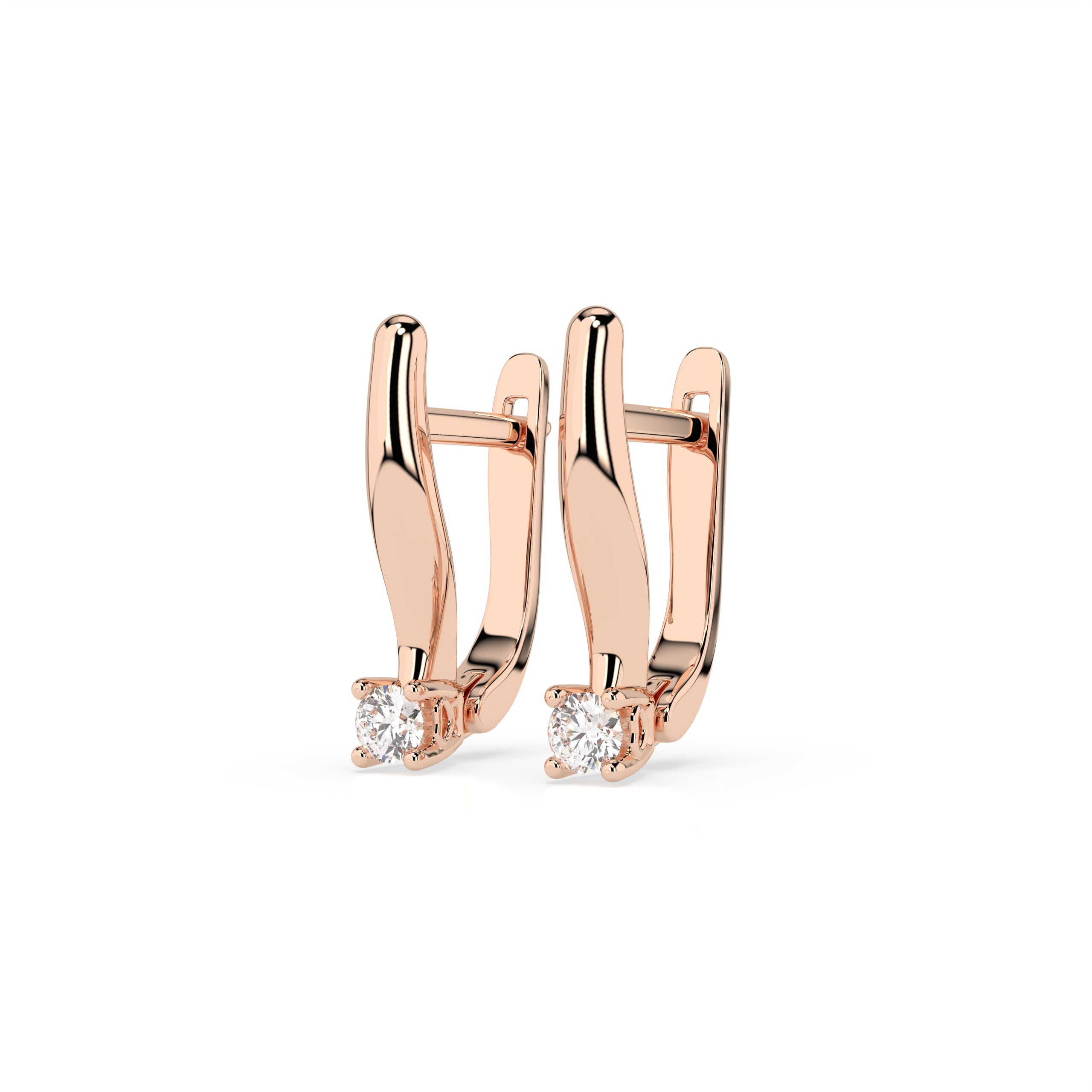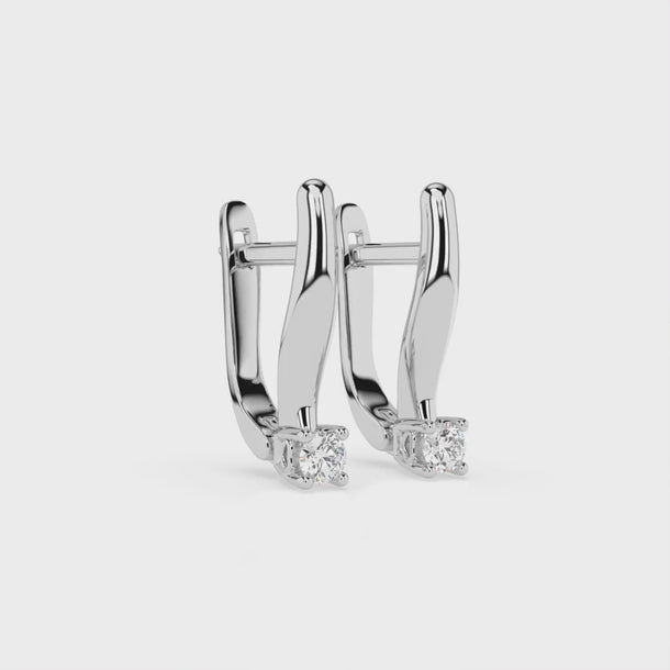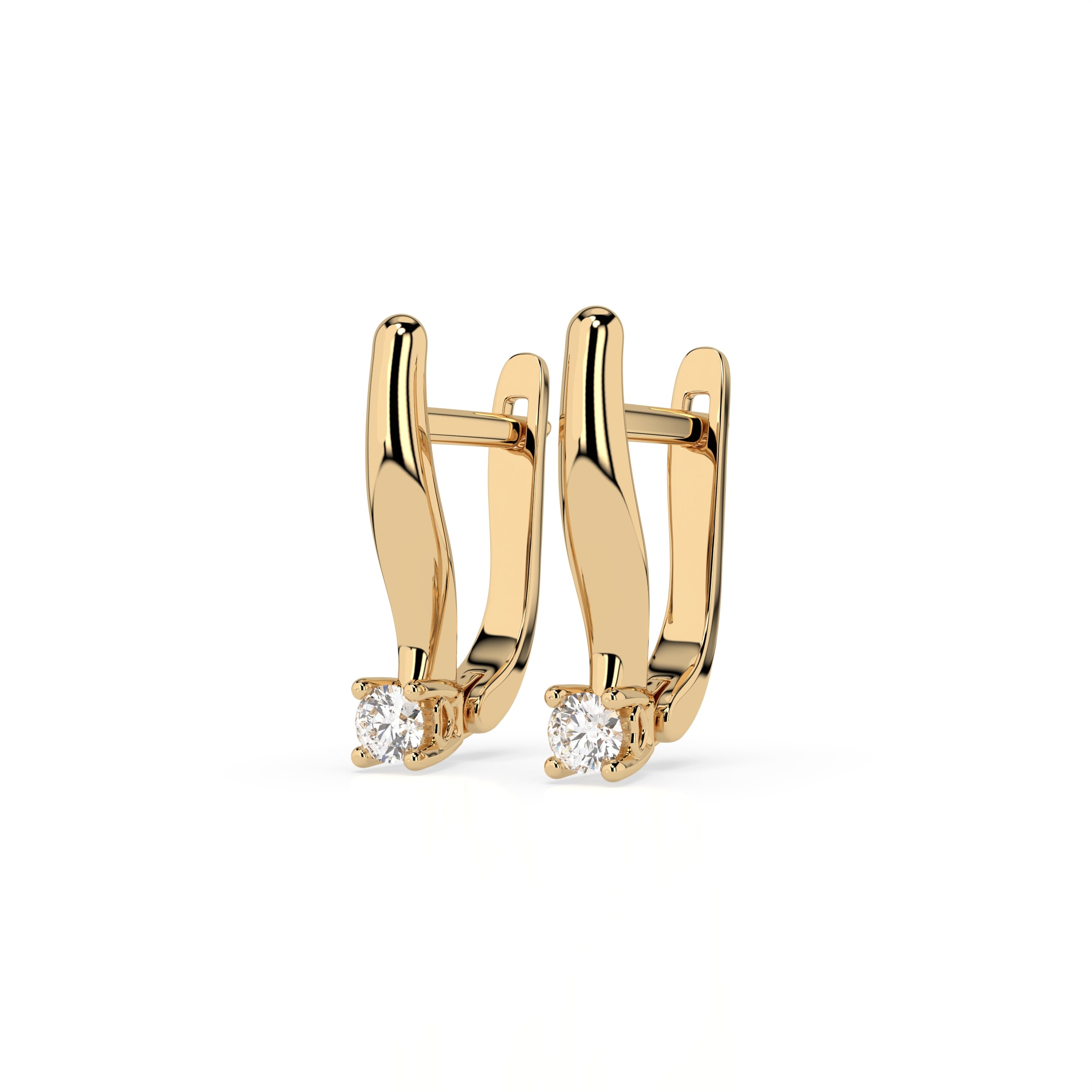 Gold Solitaire English Lock Ear Ring with 0.12 ct round diamond