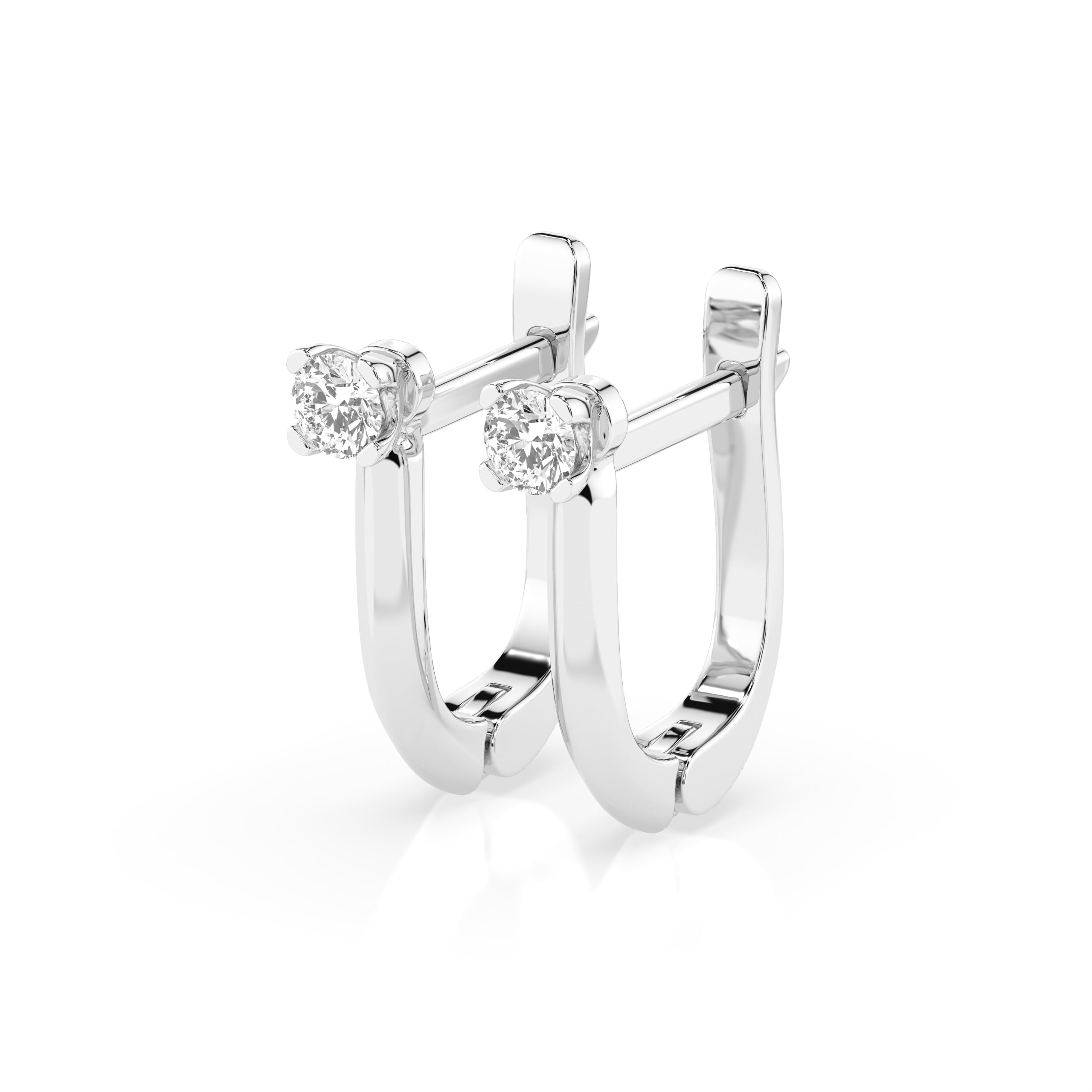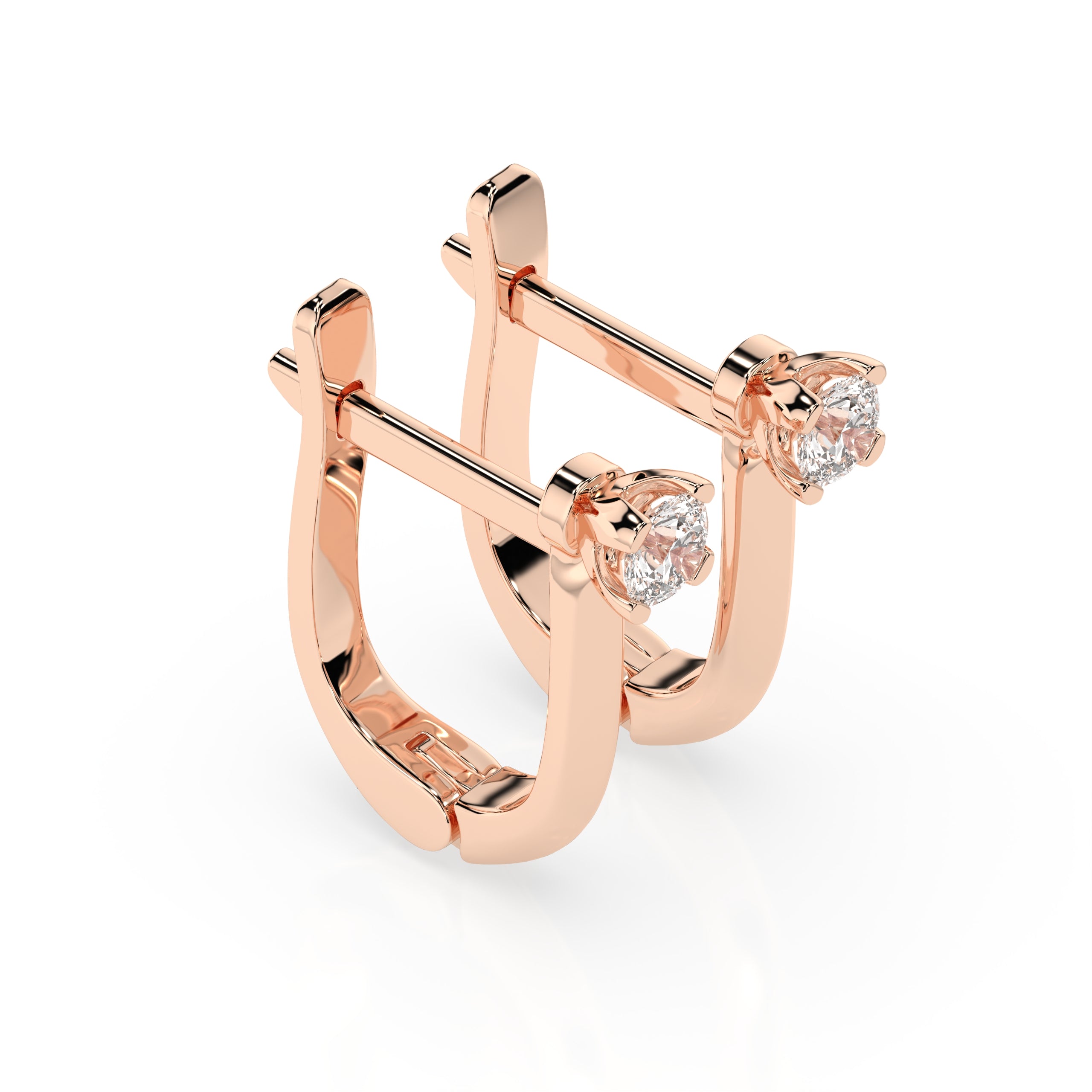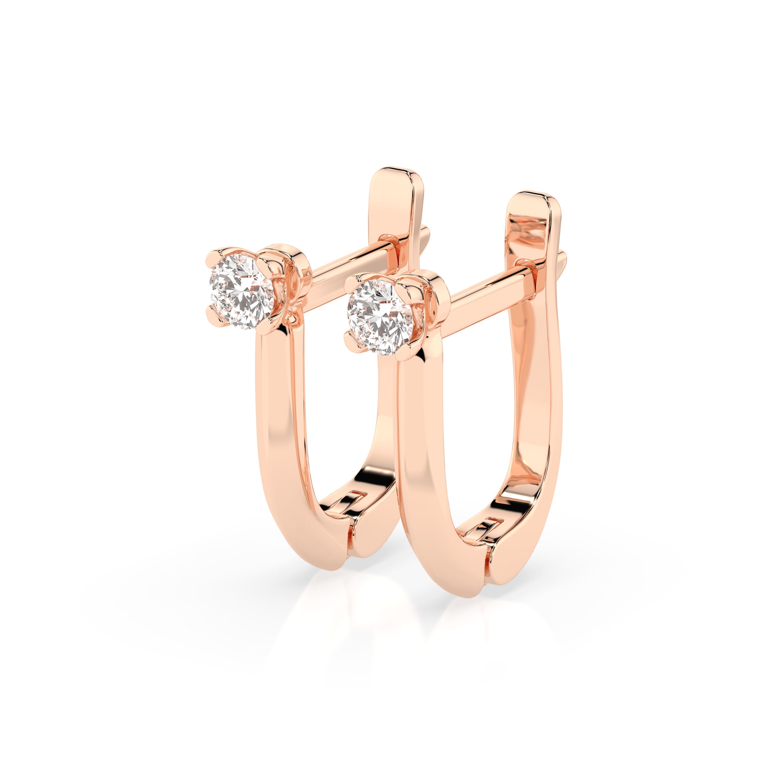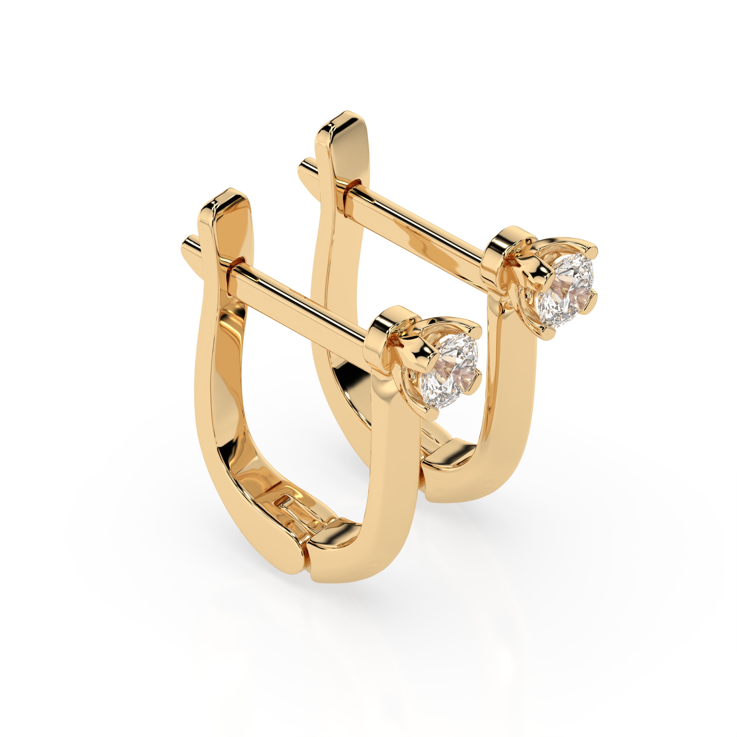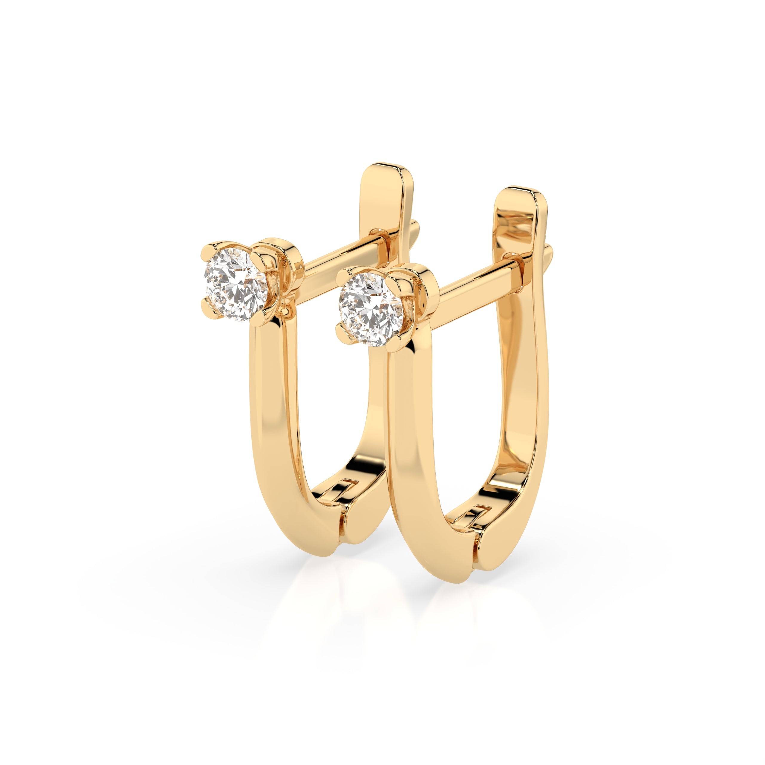 Gold Solitaire English Lock Ear Ring with 0.12 ct round diamond