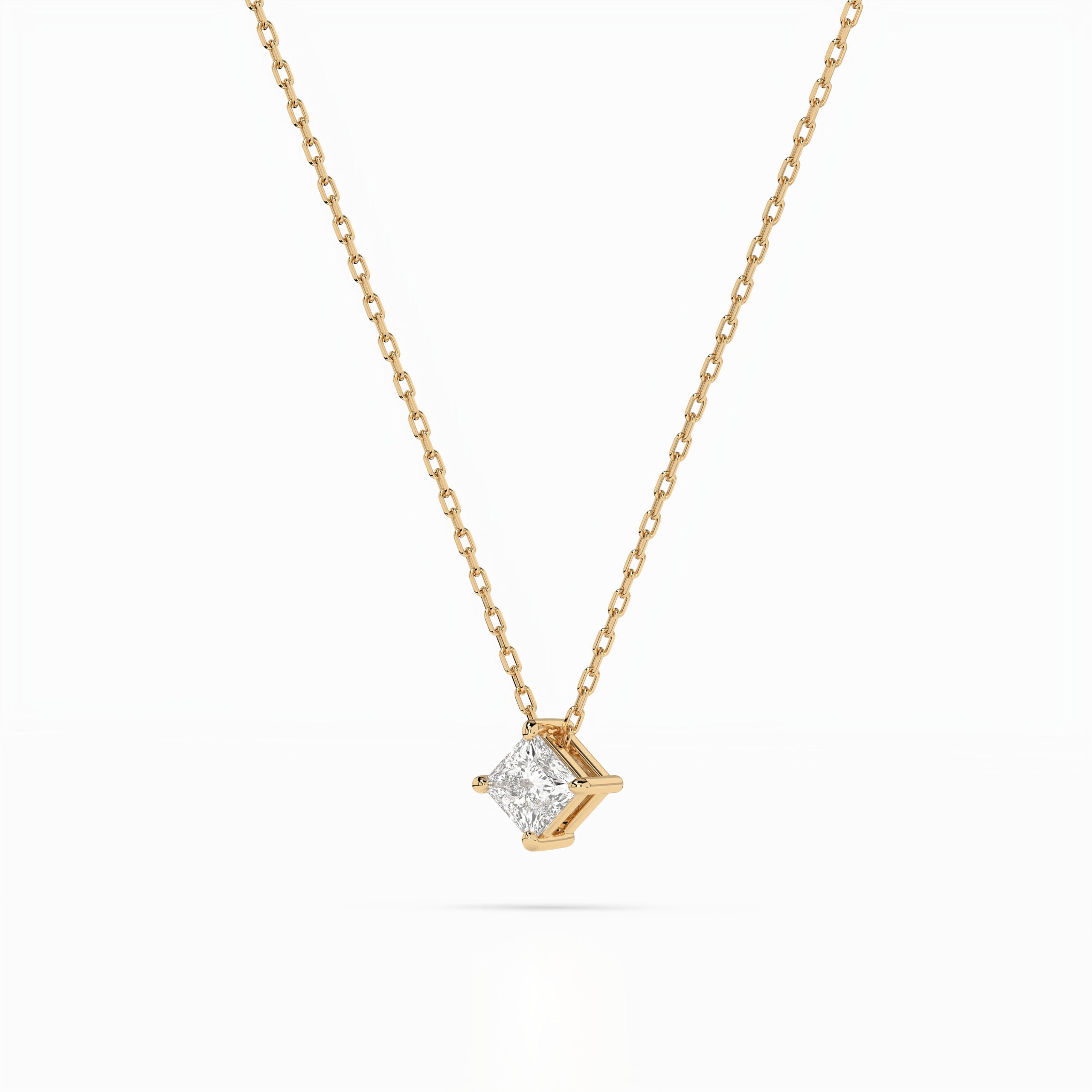 Gold Solitaire Necklace with 0.1 ct princess diamond