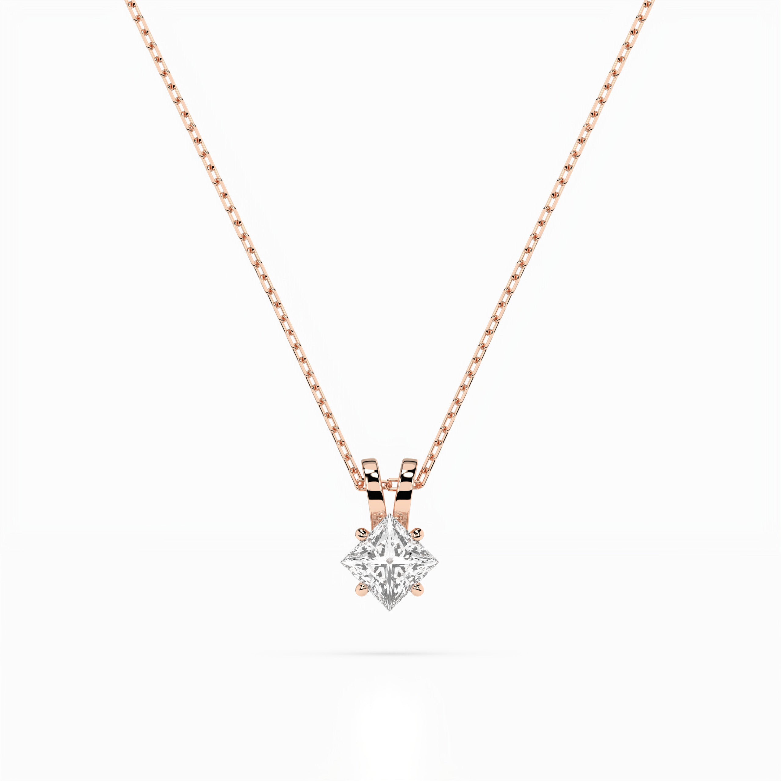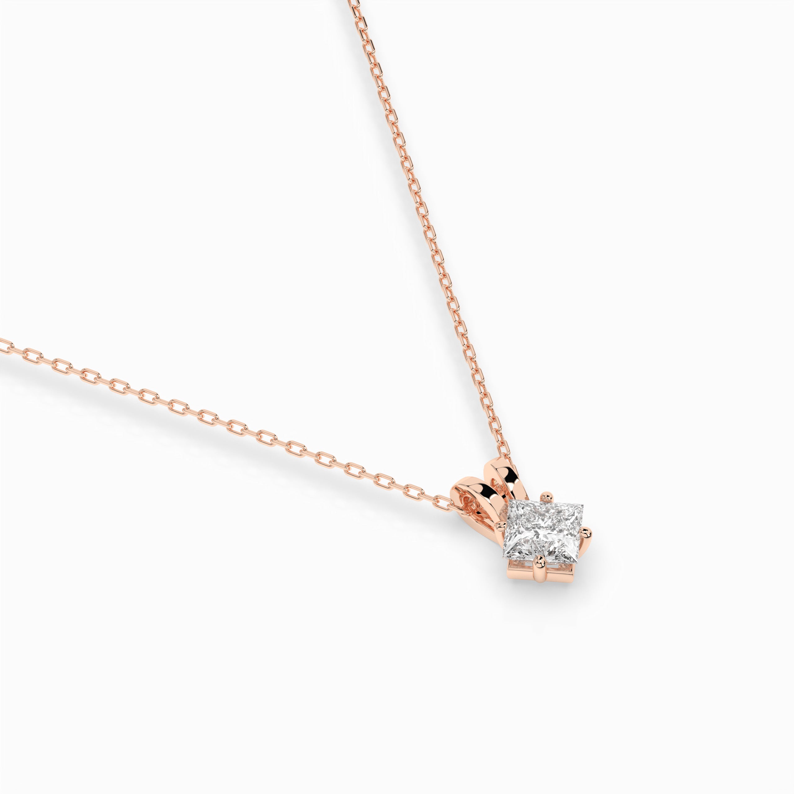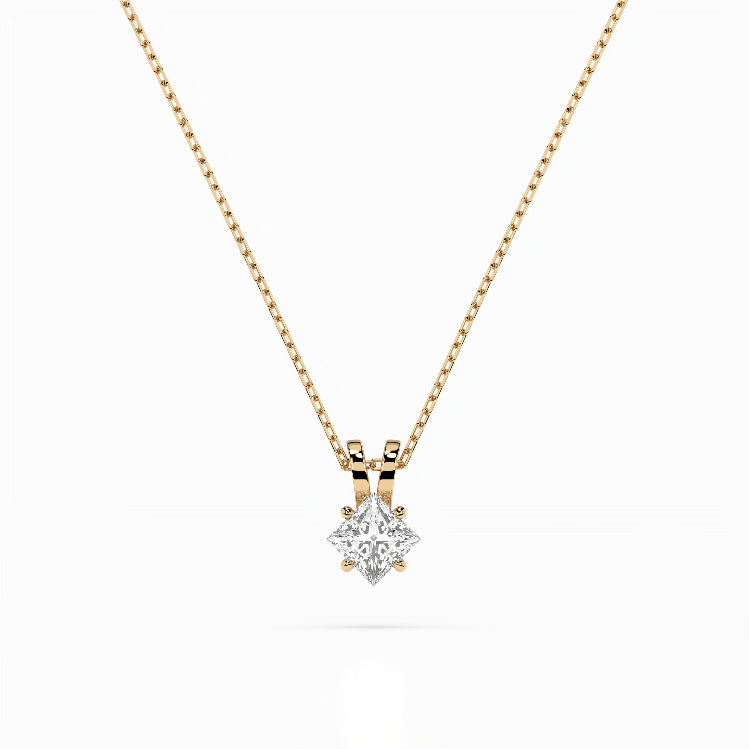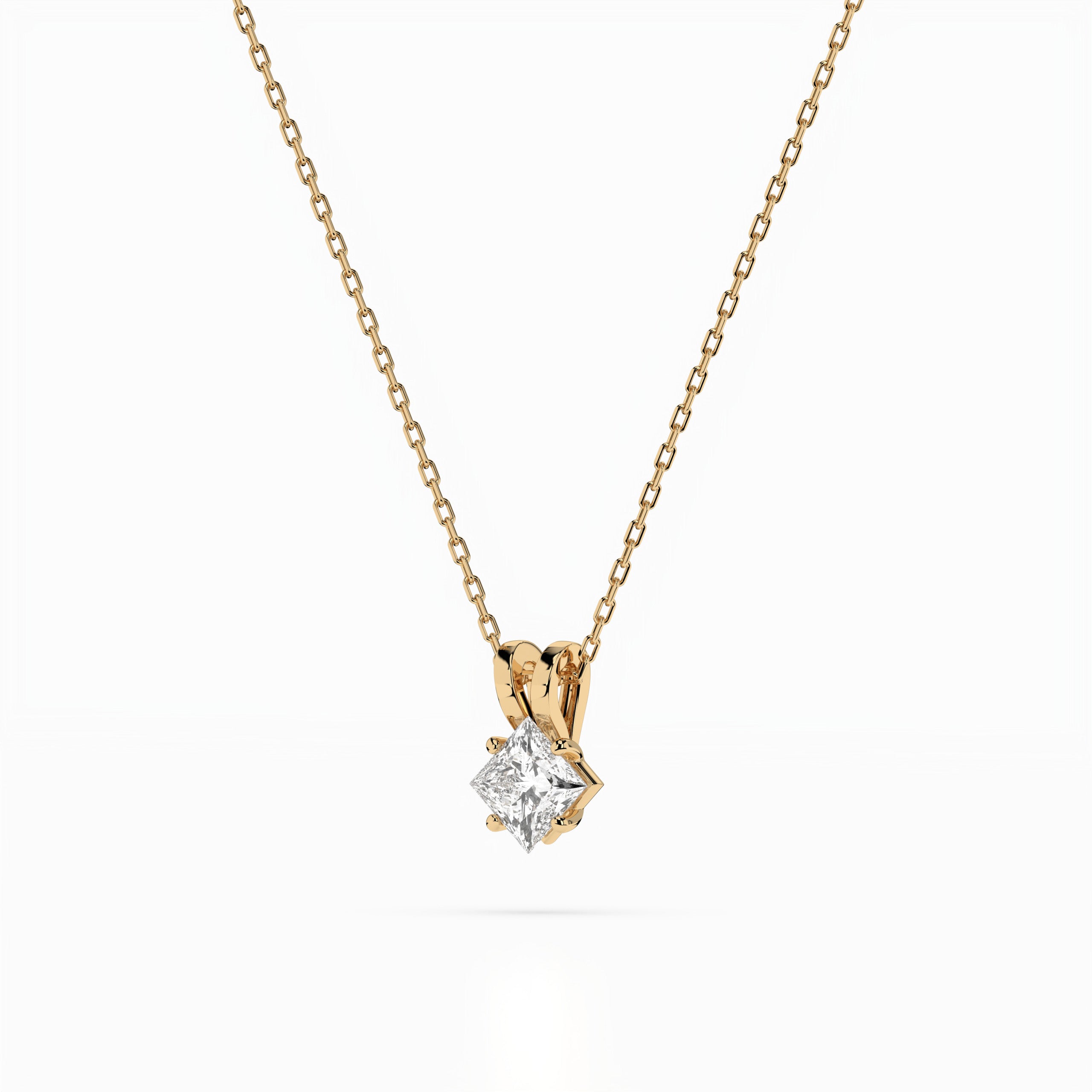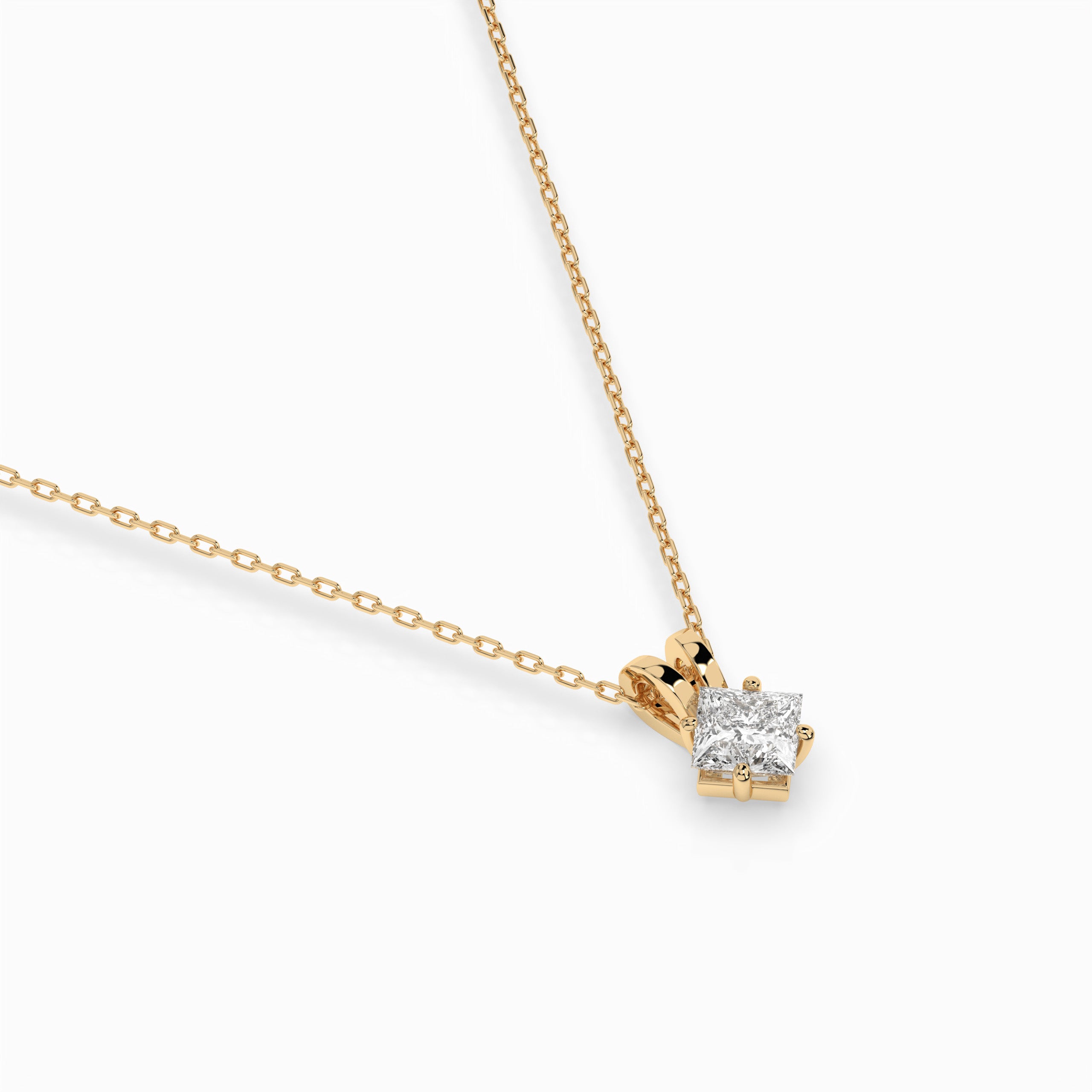 Gold Solitaire Necklace with 0.3 ct princess diamond