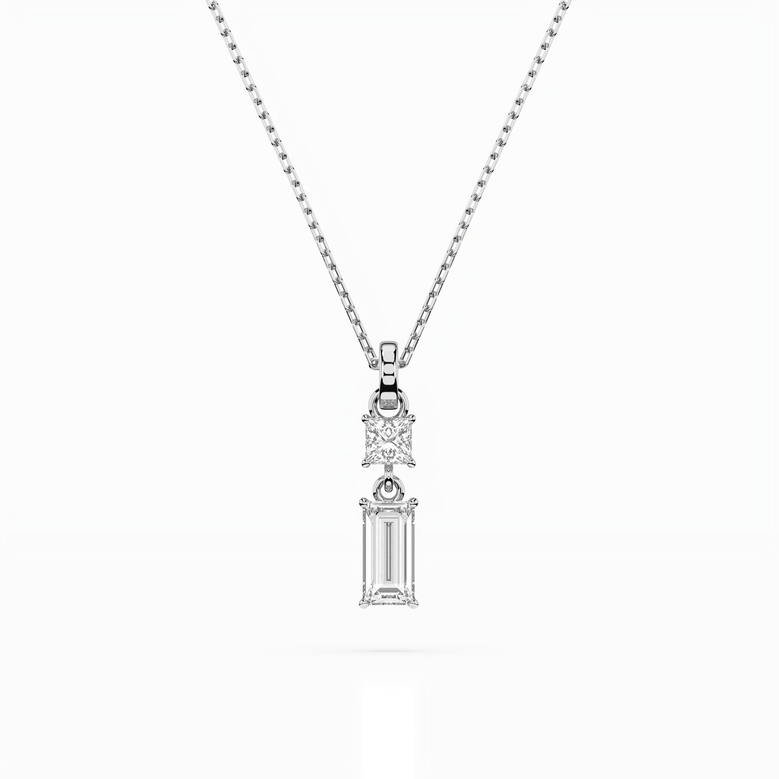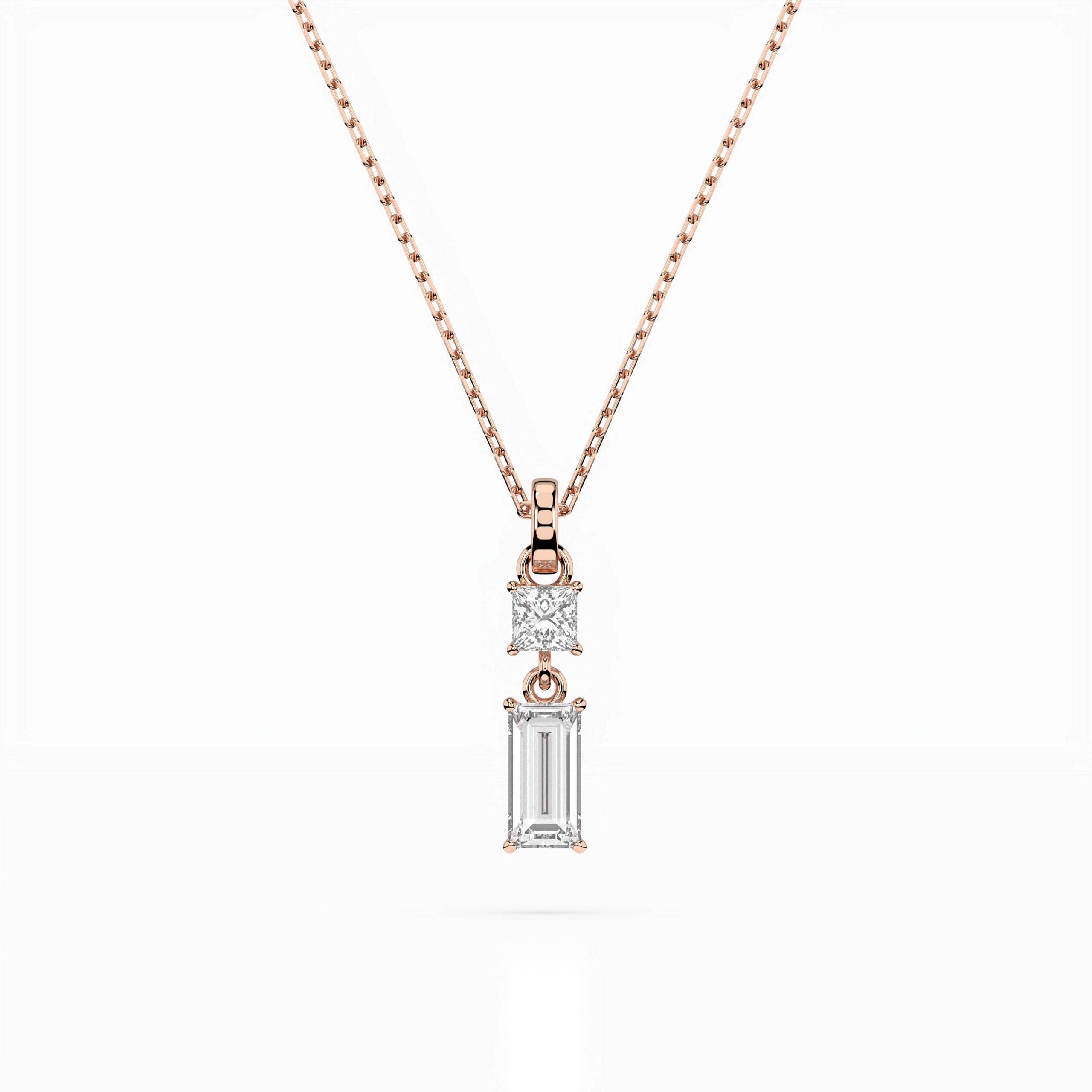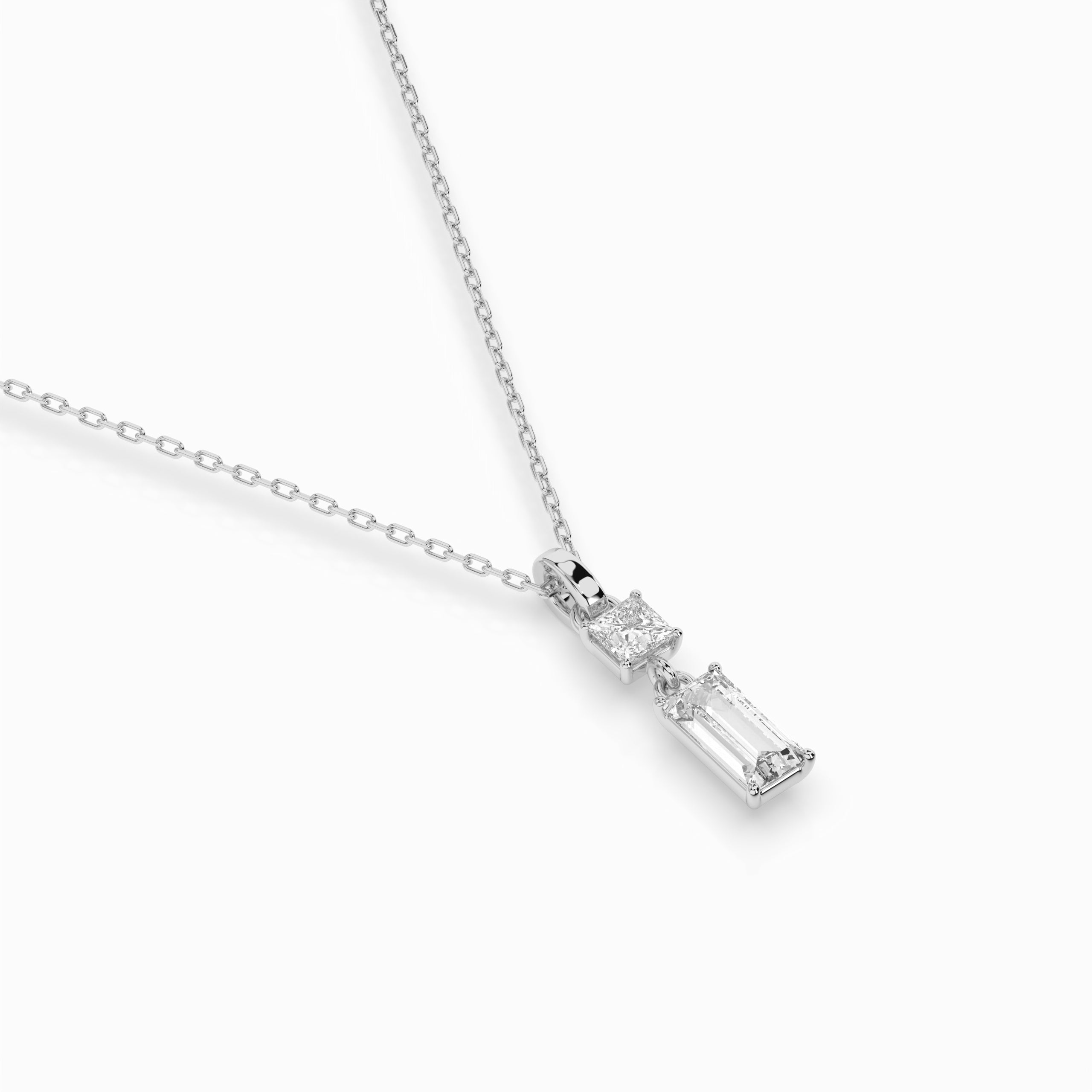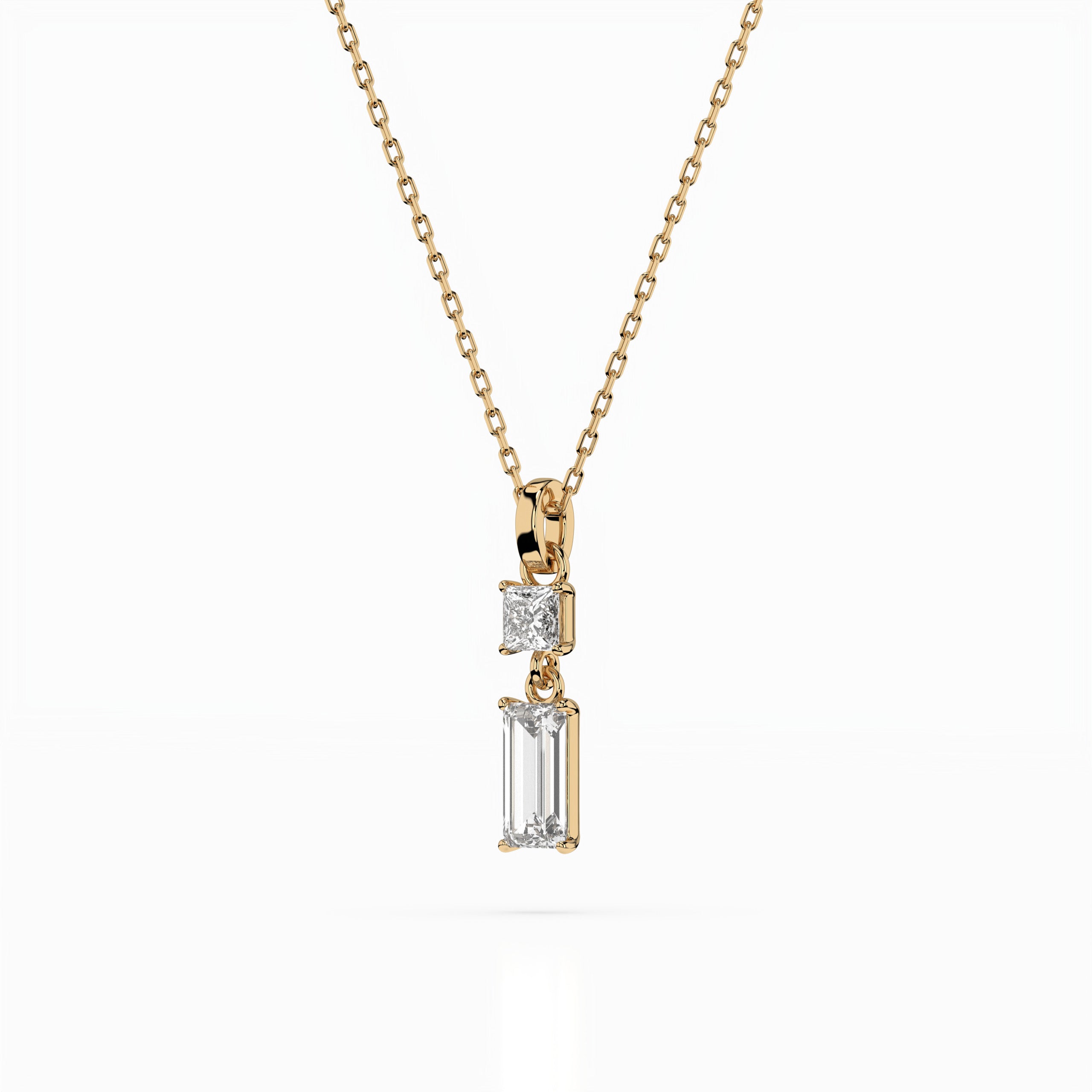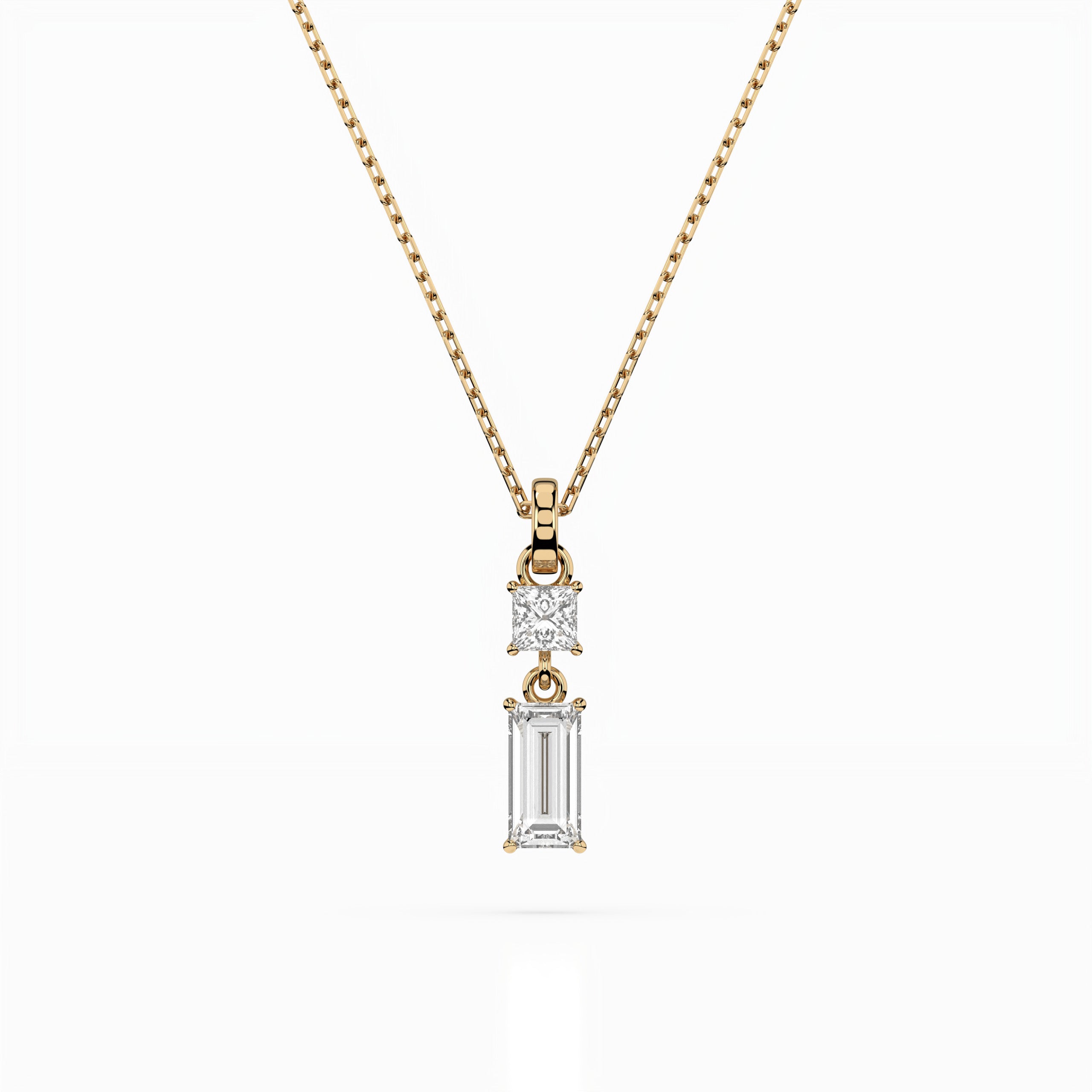 Gold Solitaire Necklace with 0.3 ct baguette diamond