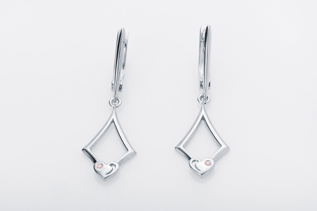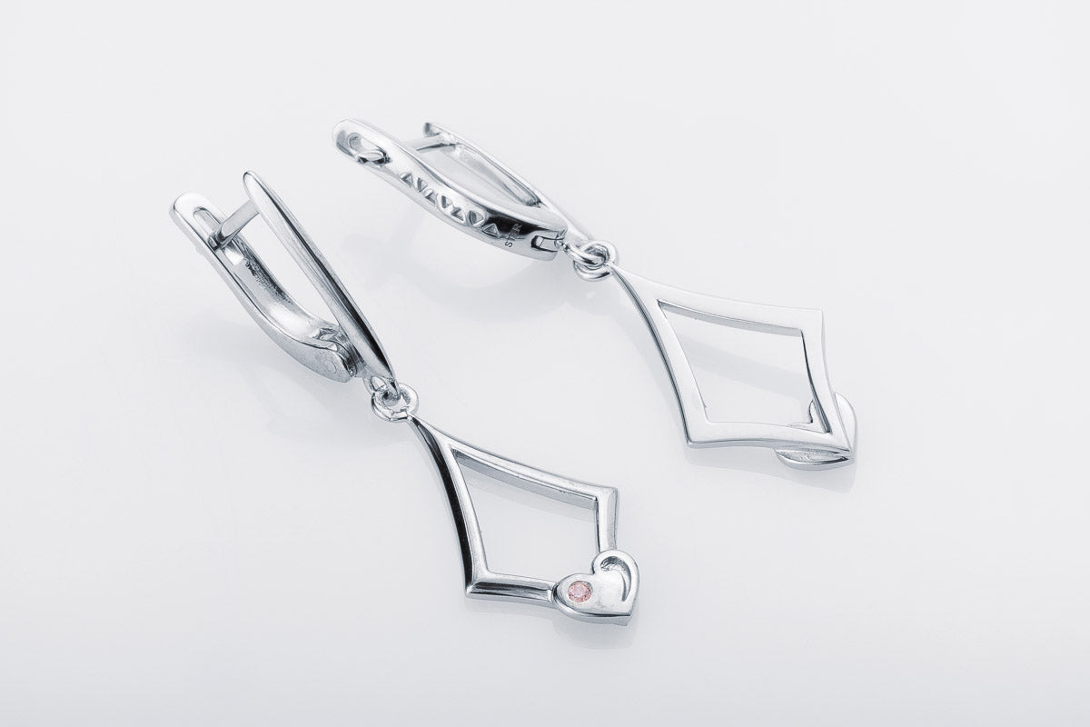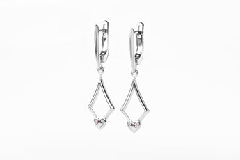 Geometric Drop Earrings with Heart Accent