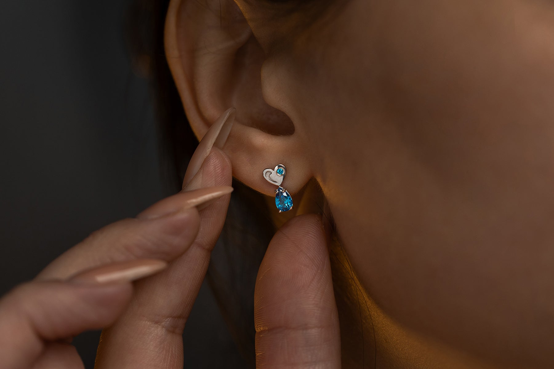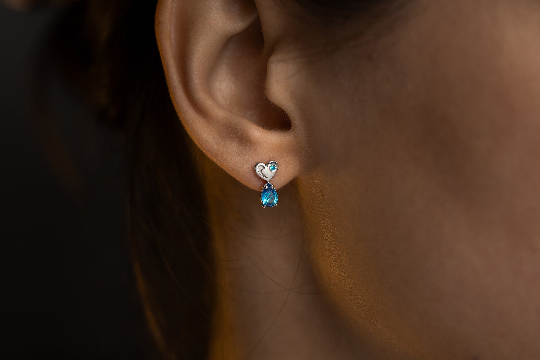 Soft blue stones bring a feeling of light and clarity, like a calm thought or a pure emotion. The small scale of the pieces makes them almost intimate — jewelry not meant to impress, but to be felt.