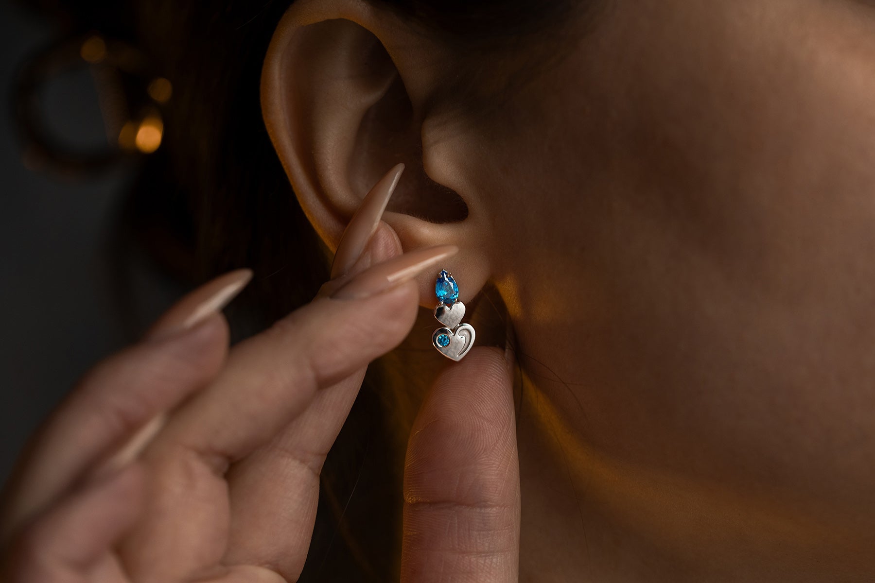 Soft blue stones bring a feeling of light and clarity, like a calm thought or a pure emotion. The small scale of the pieces makes them almost intimate — jewelry not meant to impress, but to be felt.