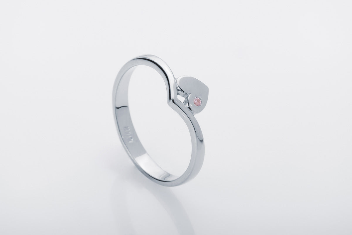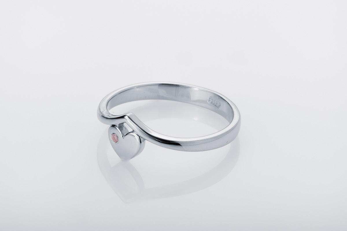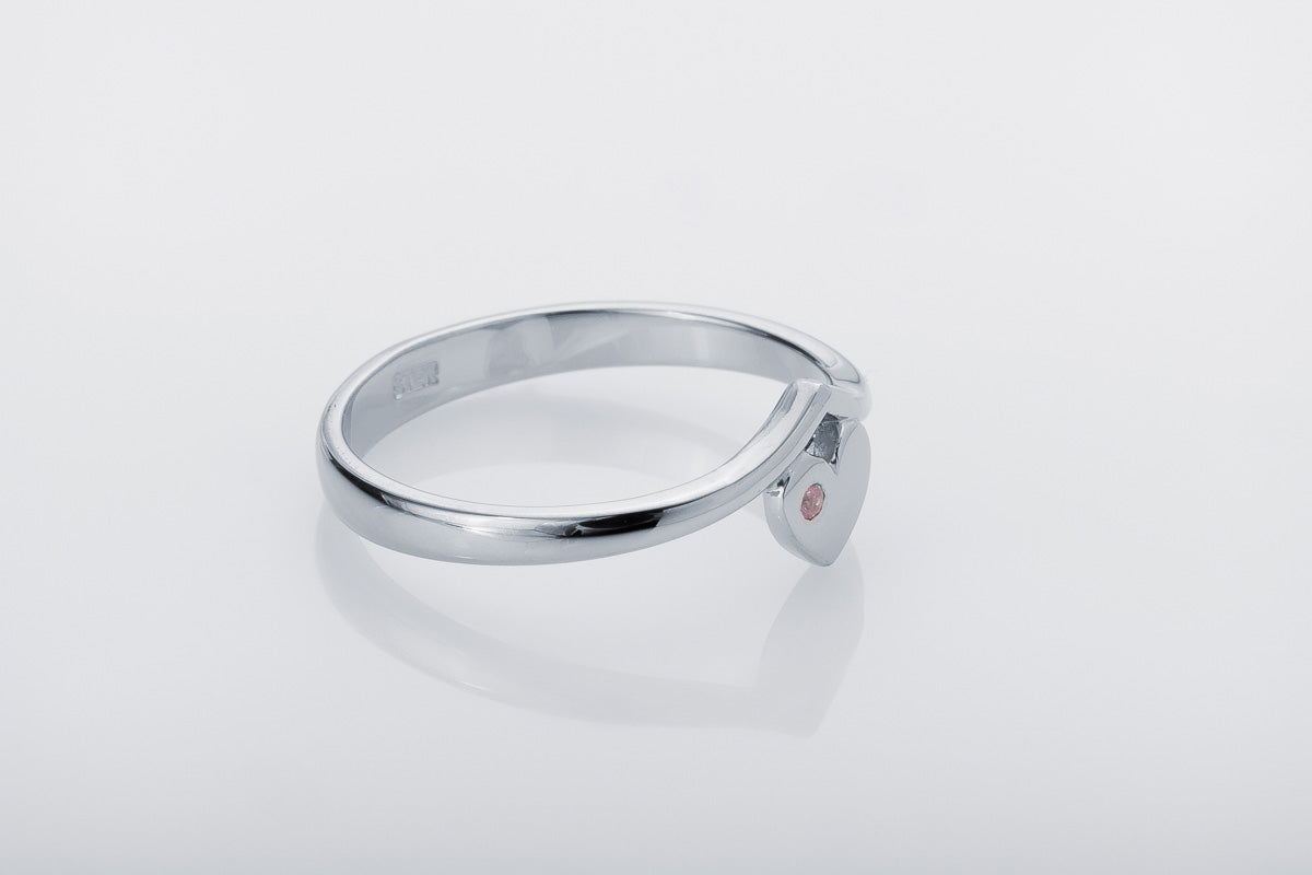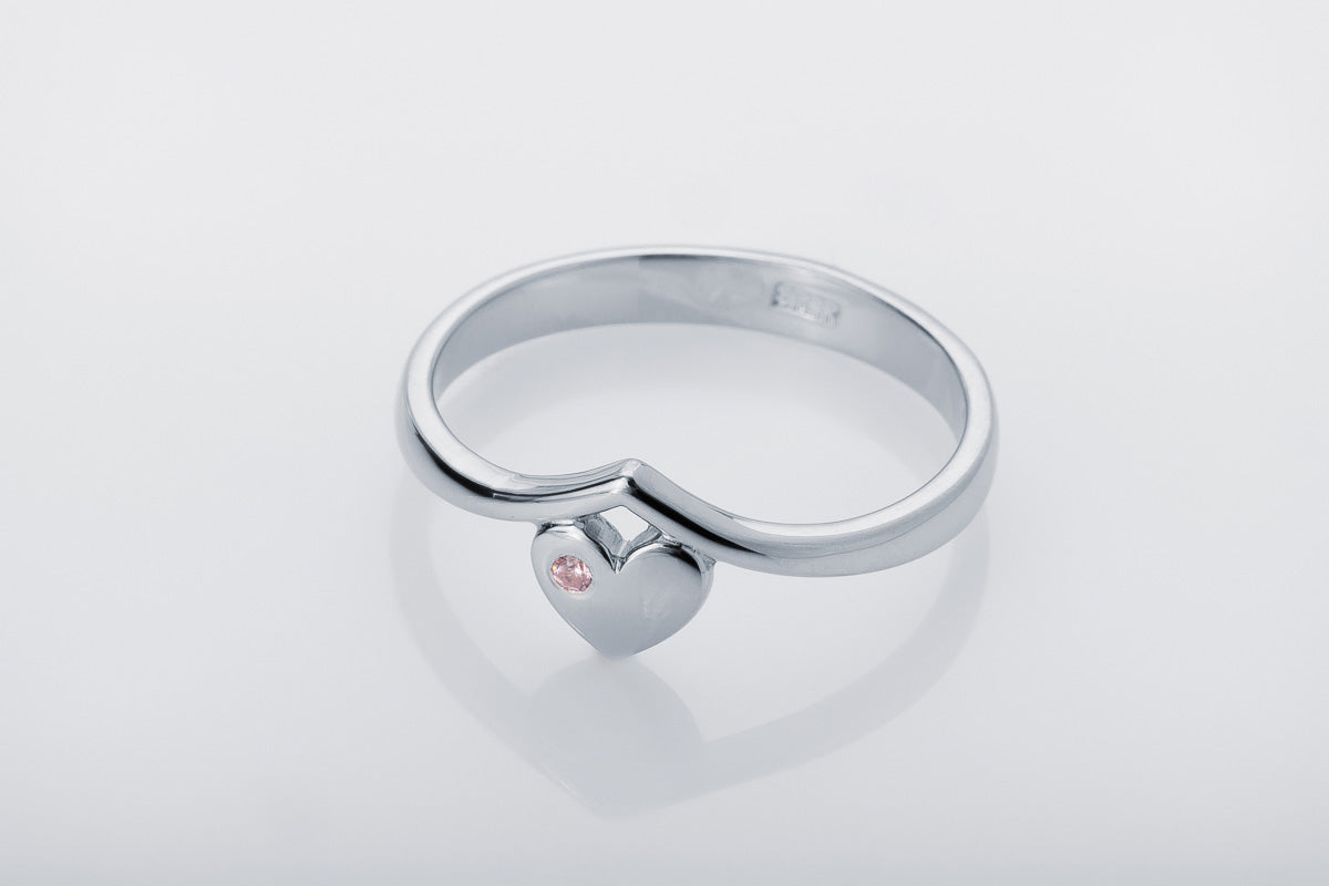 Silver Heart Ring with Pink Stone