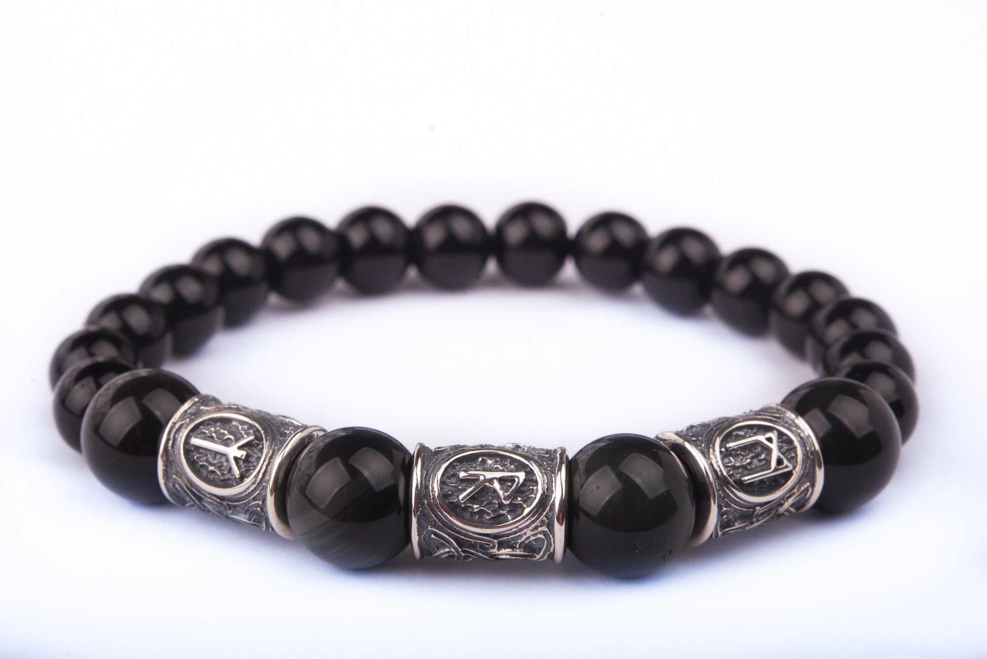 The bracelets are accented with sterling silver or bronze beads and pendants, including viking symbols such as Thor’s Hammer, Vegvísir, Valknut, and Ouroboros, that add subtle elegance and significance.