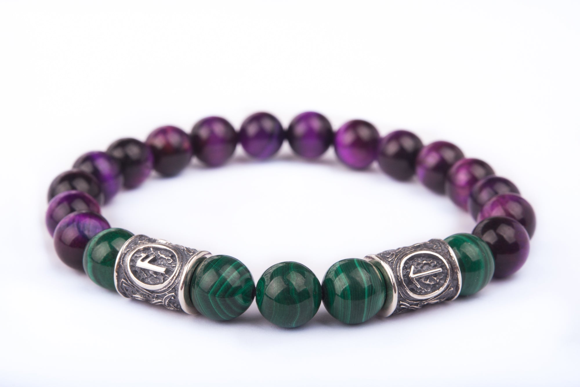 The bracelets are accented with sterling silver or bronze beads and pendants, including viking symbols such as Thor’s Hammer, Vegvísir, Valknut, and Ouroboros, that add subtle elegance and significance.