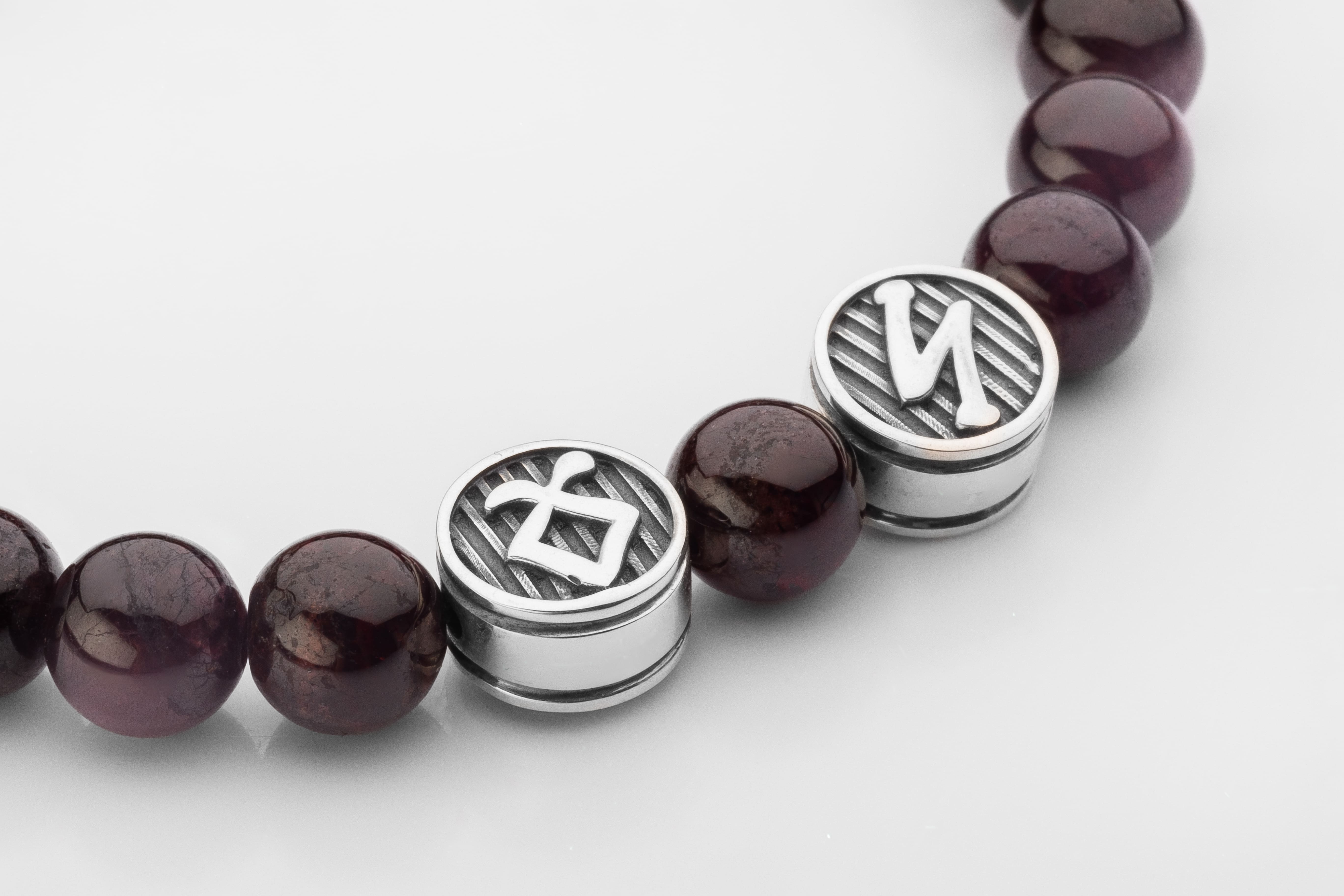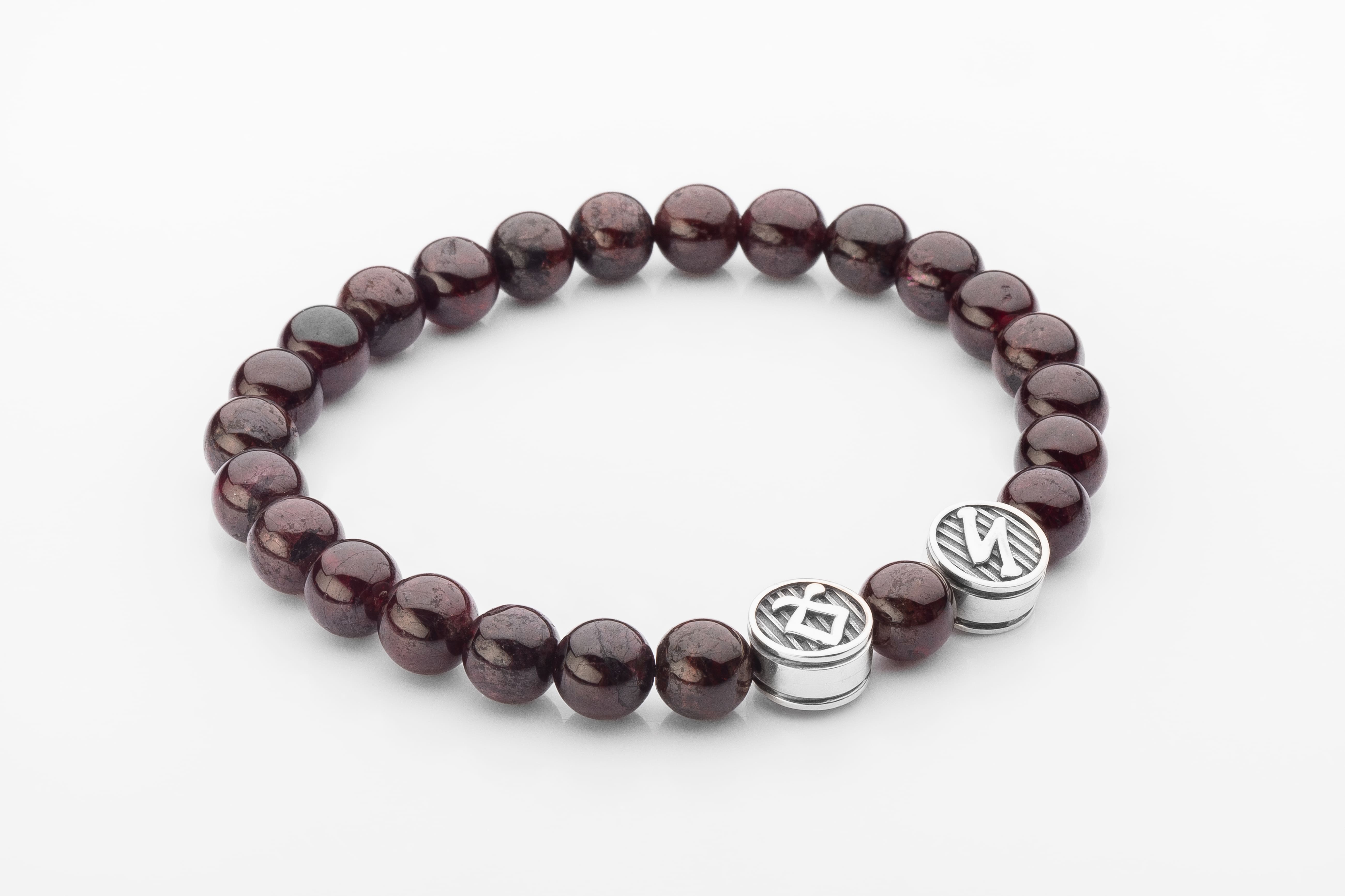 Garnet Bracelet with Two Double-Sided Sterling Silver Beads