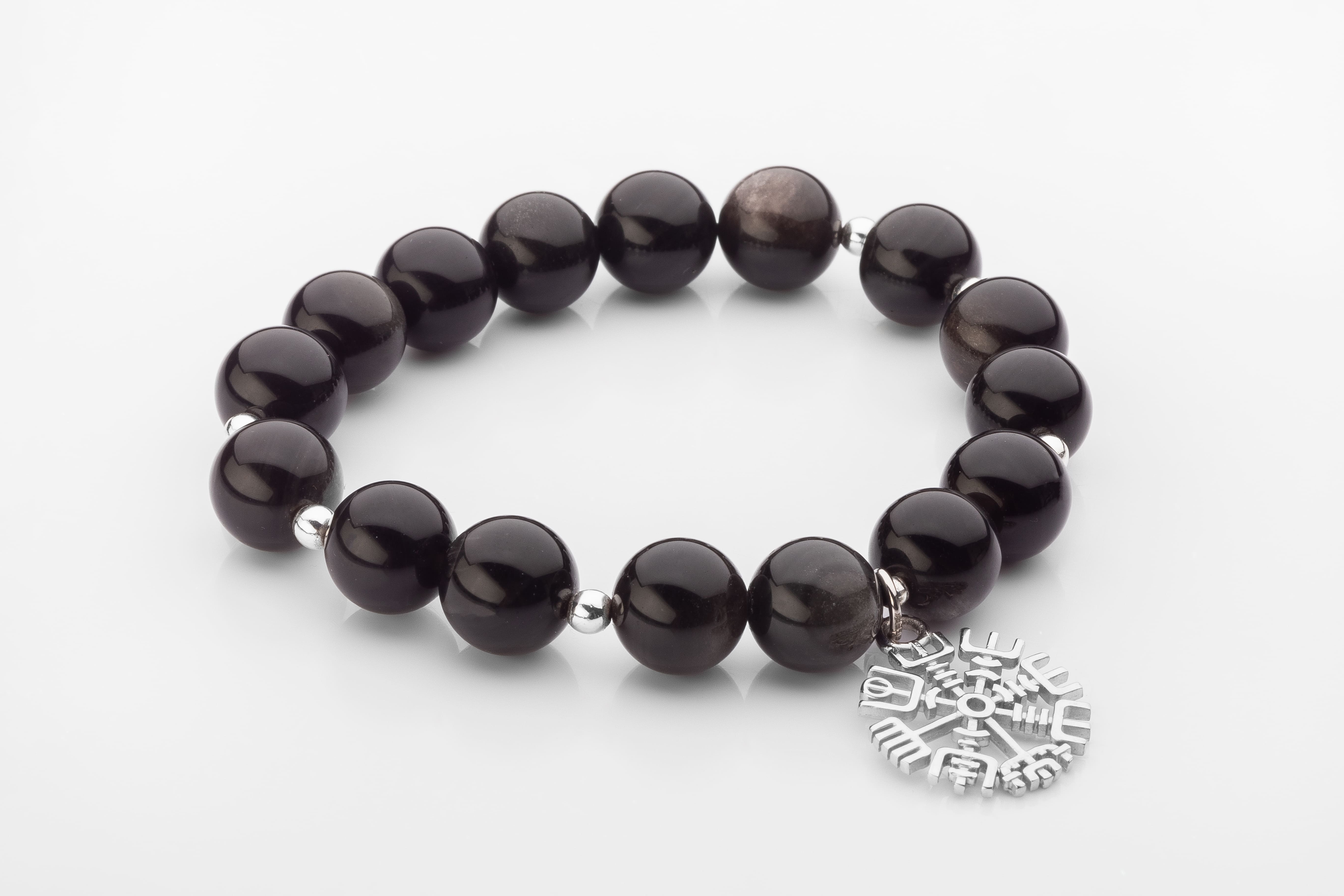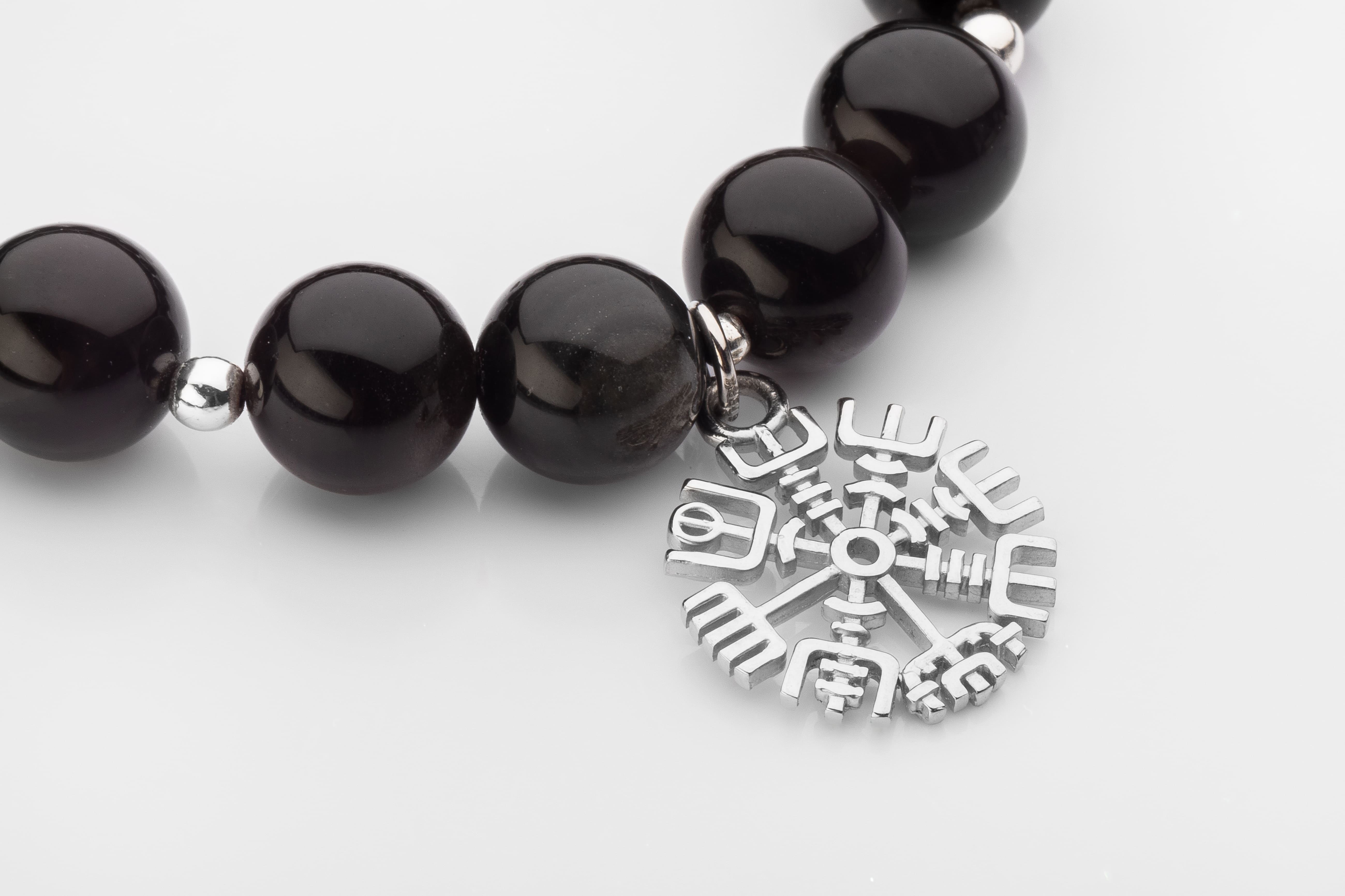 The combination of silver obsidian, hematite, and the Vegvísir pendant creates a refined and distinctive accessory with both character and meaning.