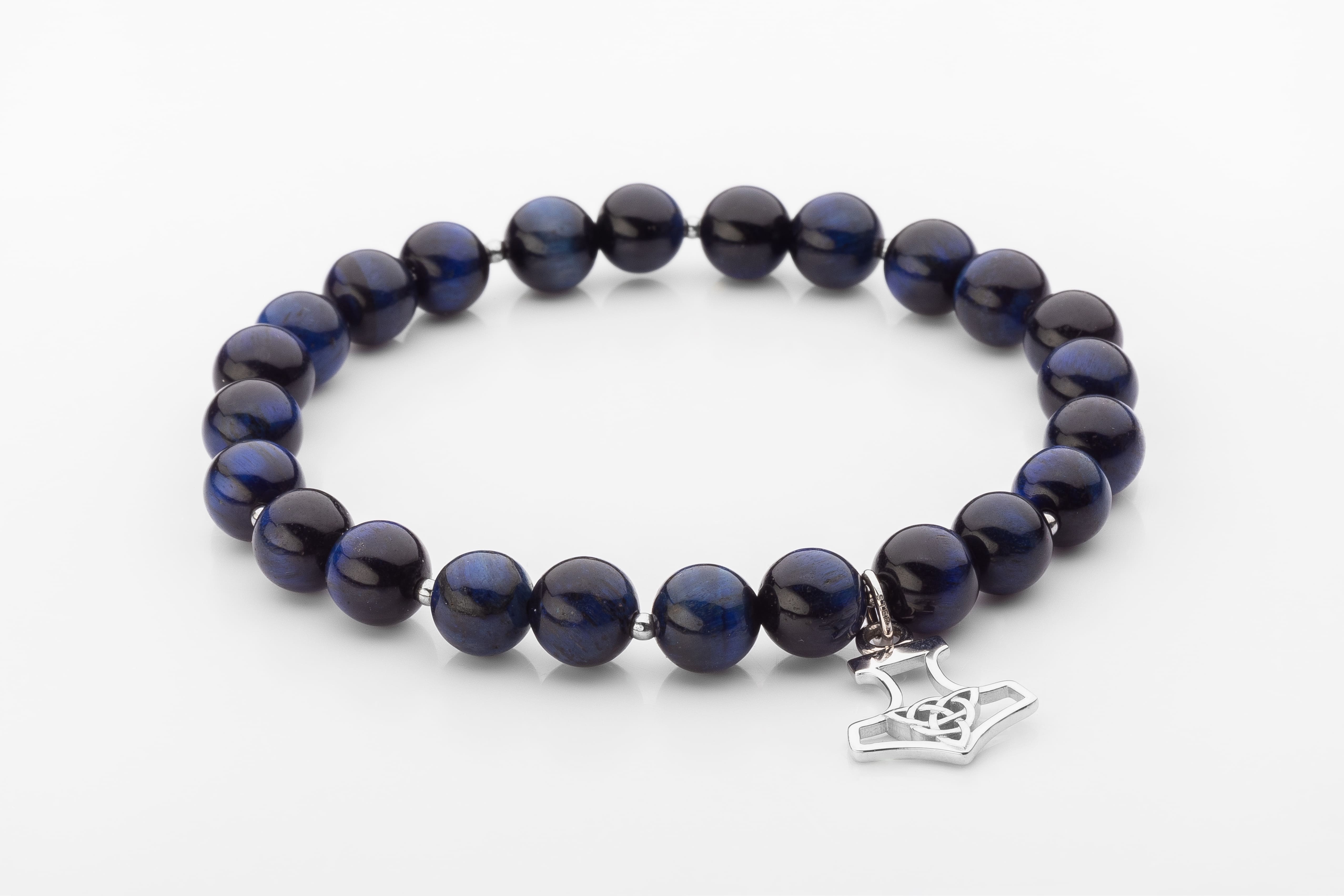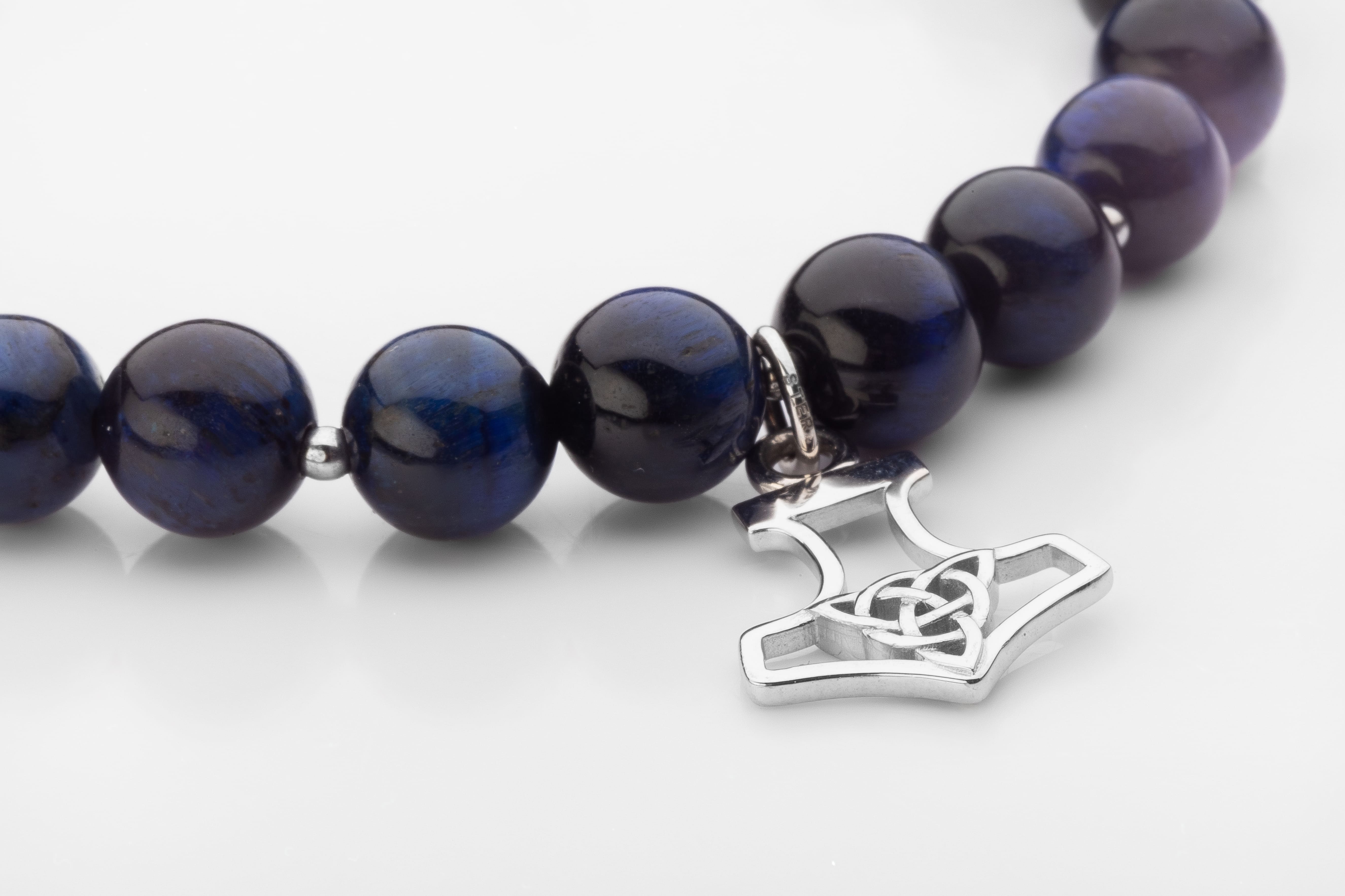 The combination of sodalite, understated hematite accents, and the Thor’s Hammer creates a refined and distinctive accessory with character.