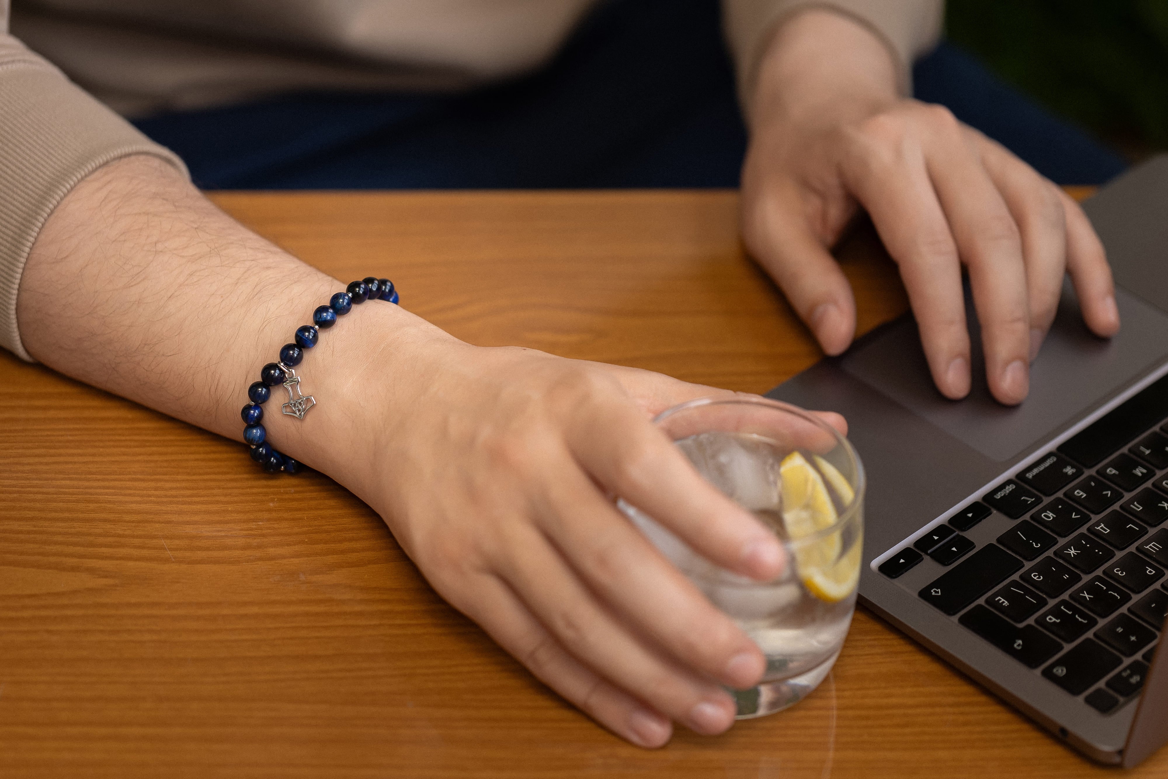 This bracelet features sodalite as the central stone, valued for its deep blue tones and properties that promote clarity, focus, and emotional balance. Small hematite beads are used as subtle accents, enhancing the rhythm of the design without overpowering the main stone.