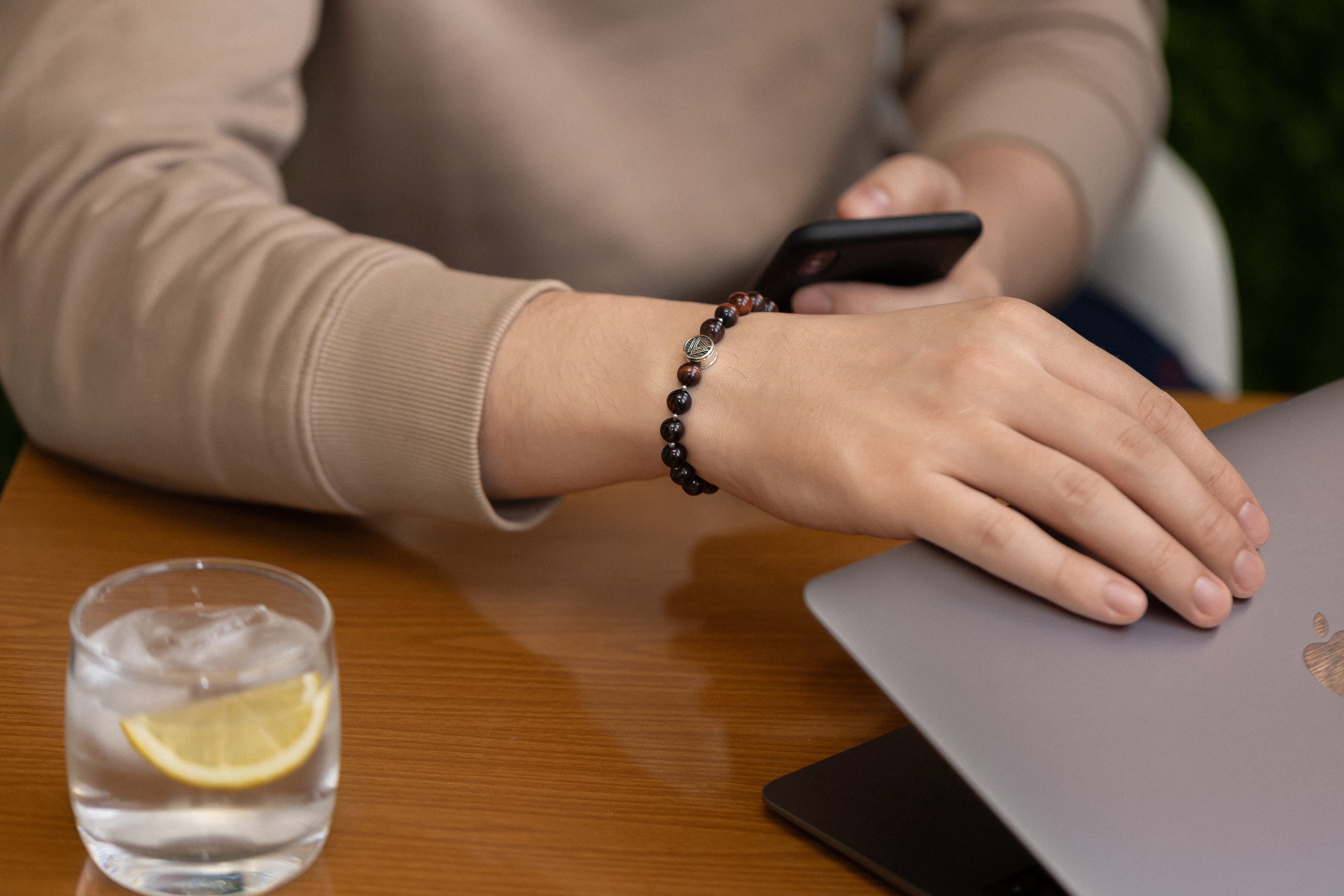 The bracelets are accented with sterling silver or bronze beads and pendants, including viking symbols such as Thor’s Hammer, Vegvísir, Valknut, and Ouroboros, that add subtle elegance and significance.