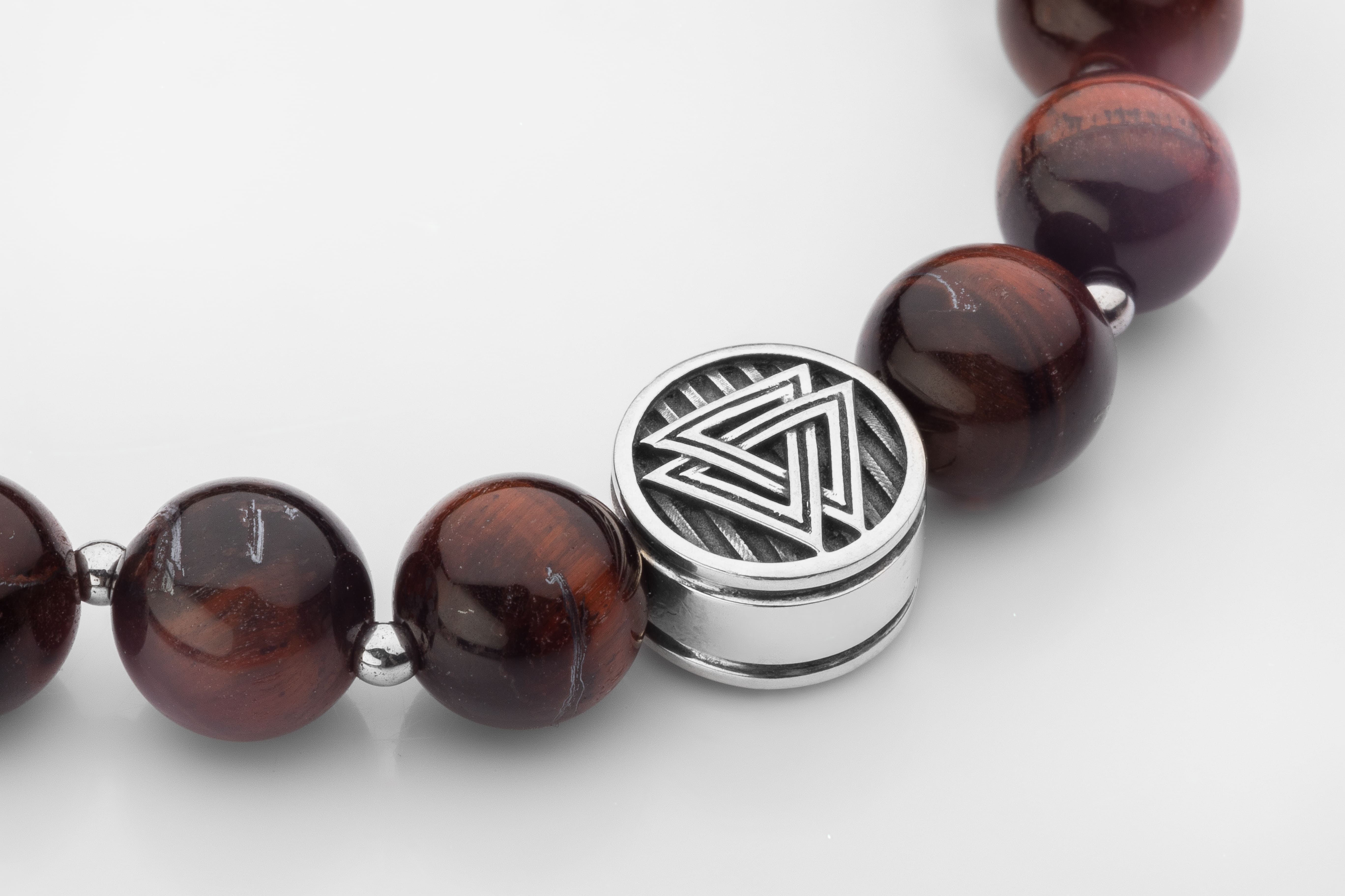 The combination of Tiger’s Eye and the Valknut bead creates a bold, meaningful, and distinctive accessory.