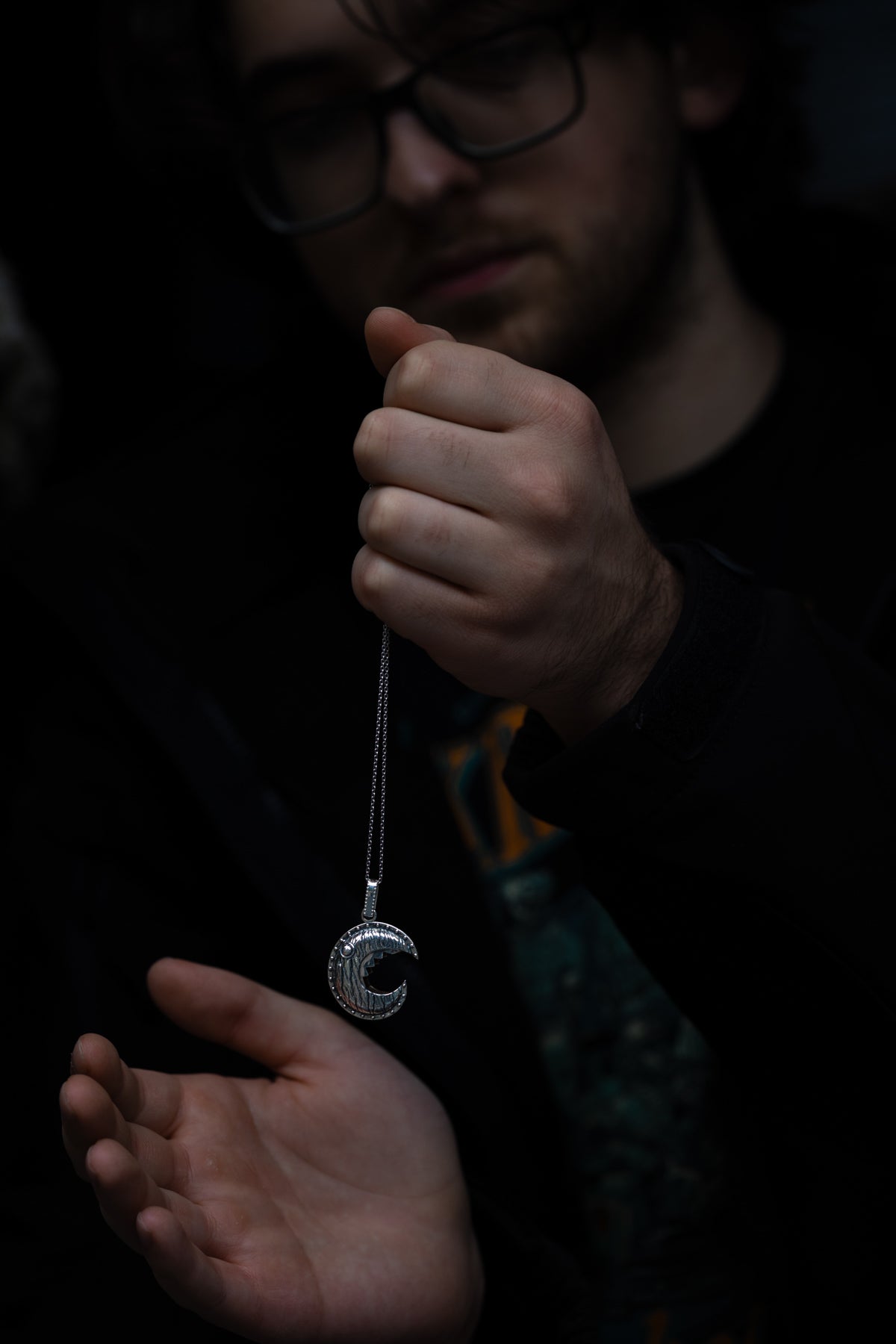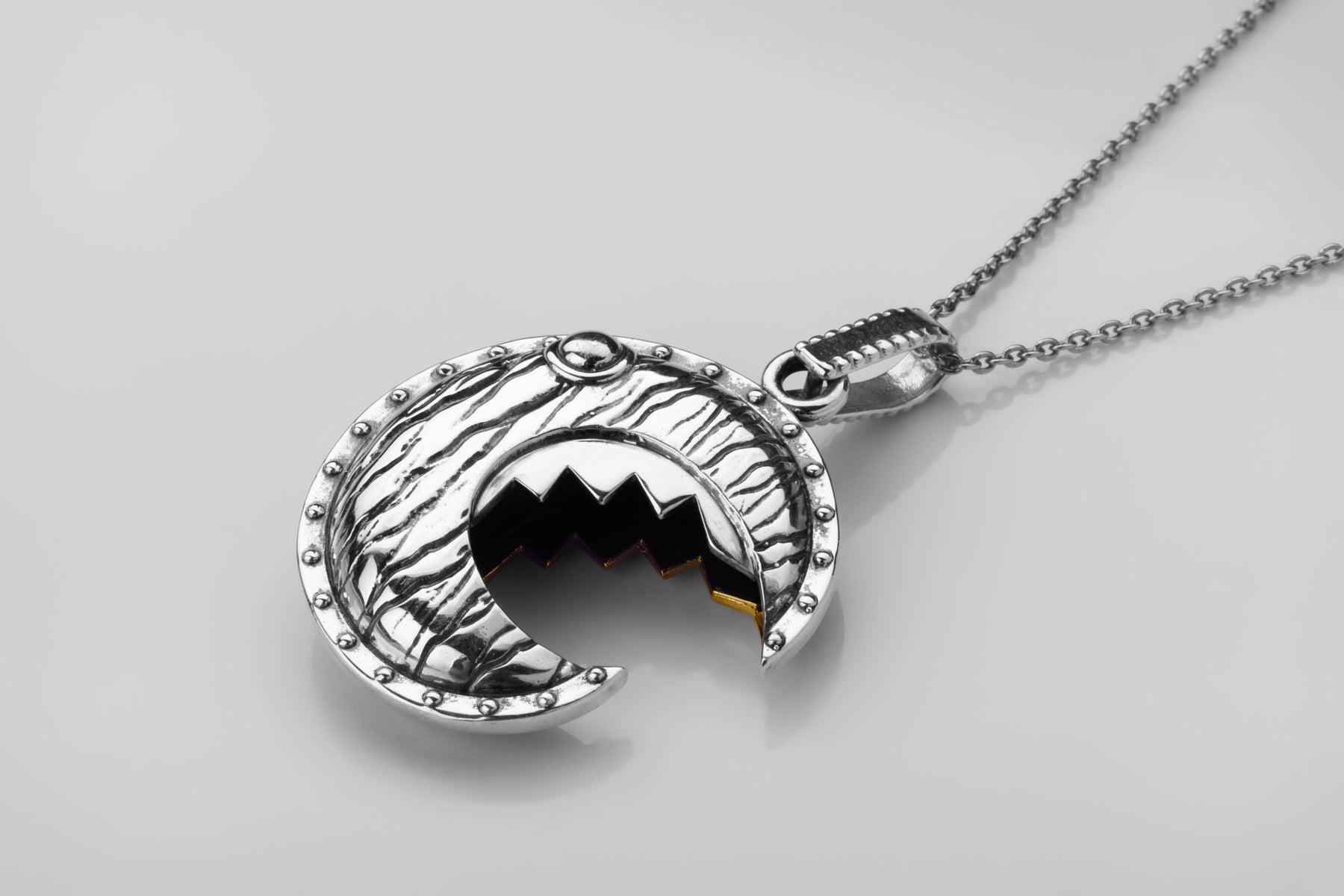 The pendant is inspired by the carved ship’s figurehead raised from the River Scheldt in Belgium.