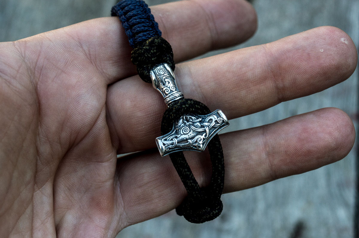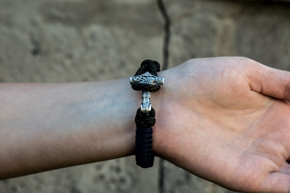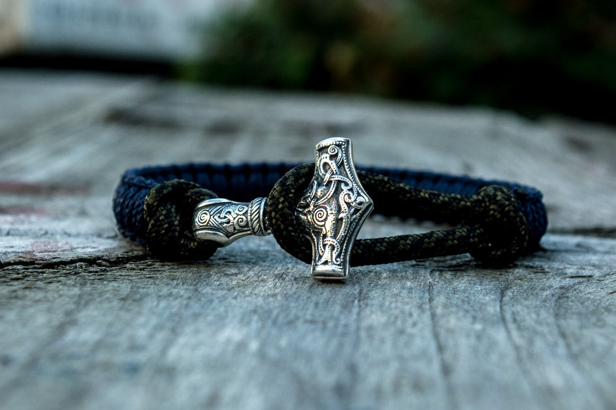 Sterling Silver Thors Hammer Olive With Purple Paracord Handcrafted Bracelet