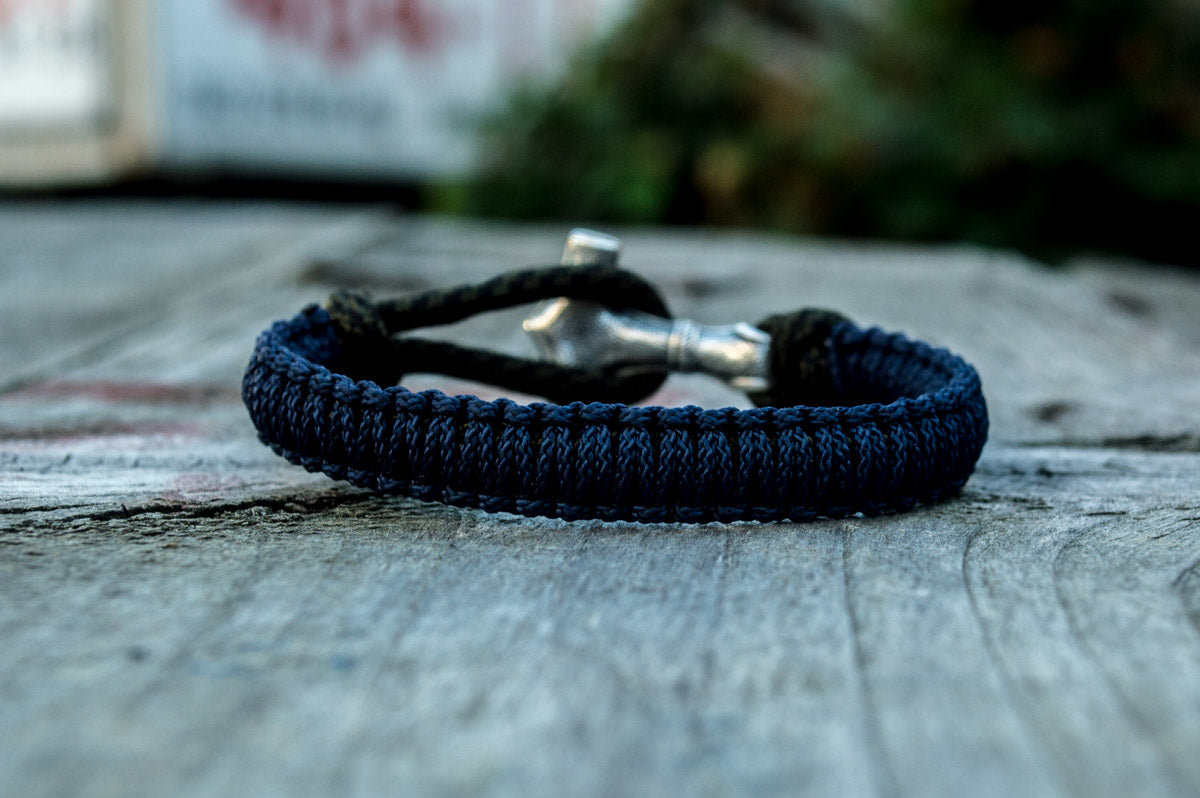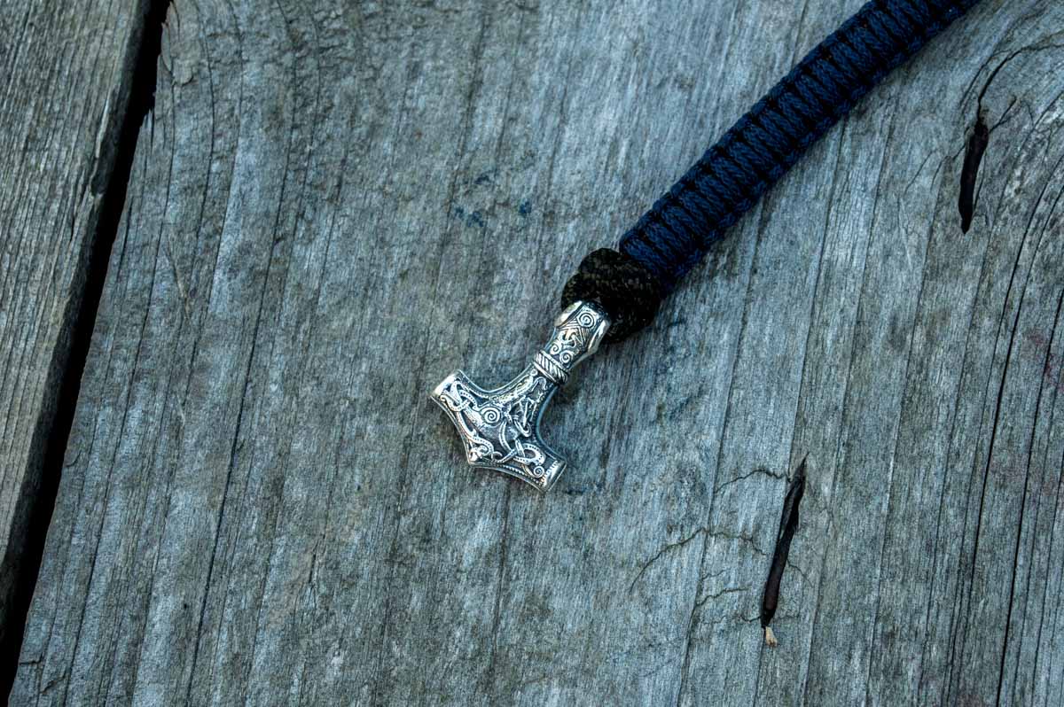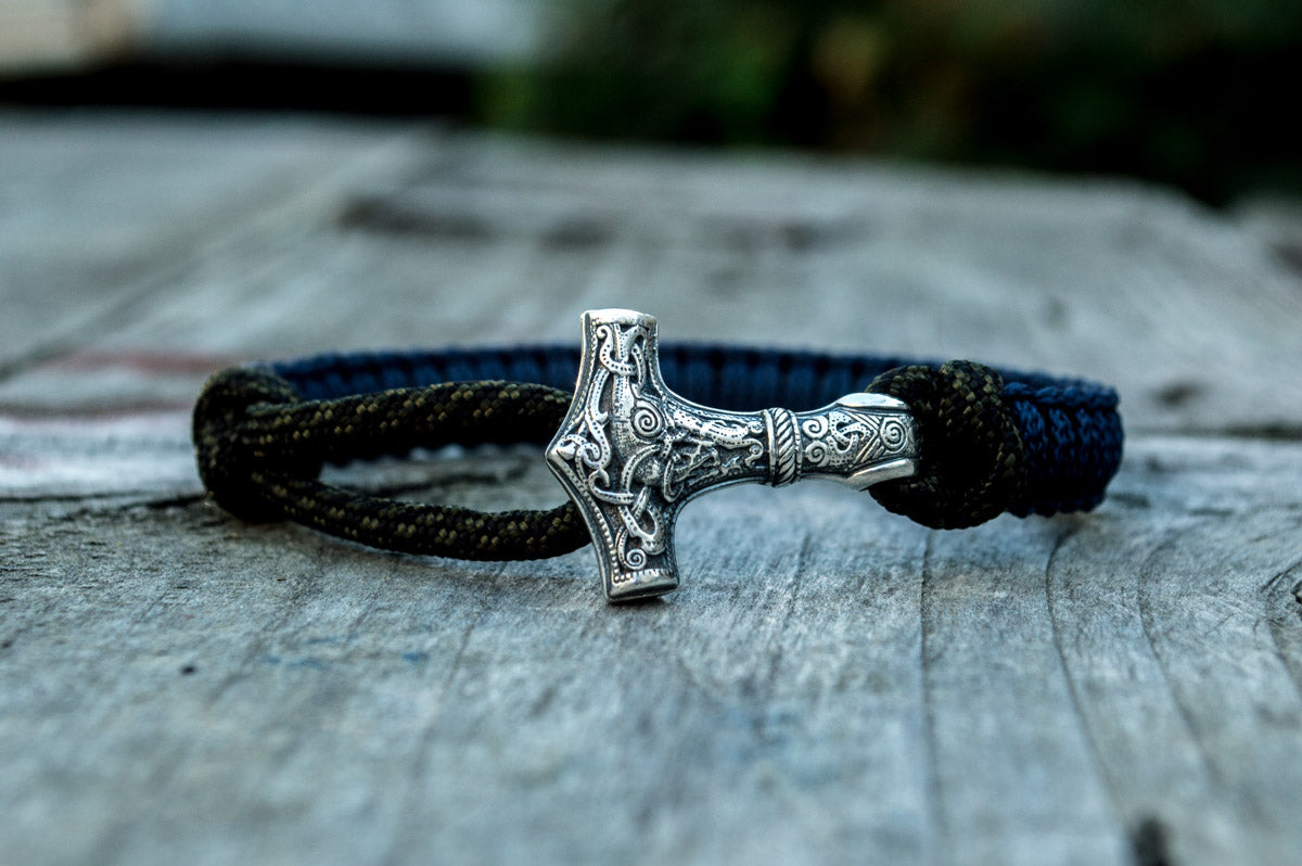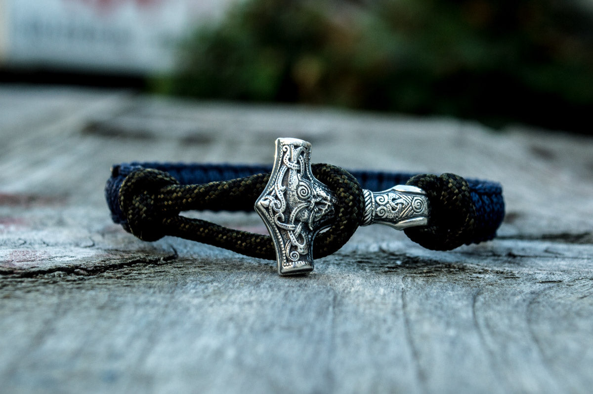 Sterling Silver Thors Hammer Olive With Purple Paracord Handcrafted Bracelet